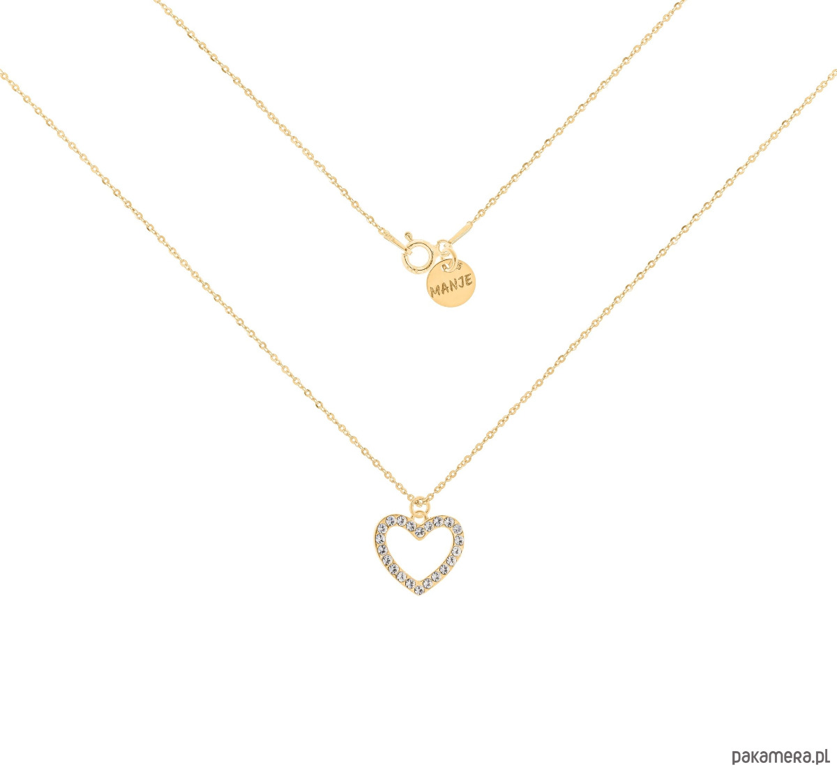 Srebrny naszyjnik pozłacany z sercem i bezbarwnymi kryształkami Gavbari. Wykonany ze srebra próby 925, pokryty 18-karatowym złotem.