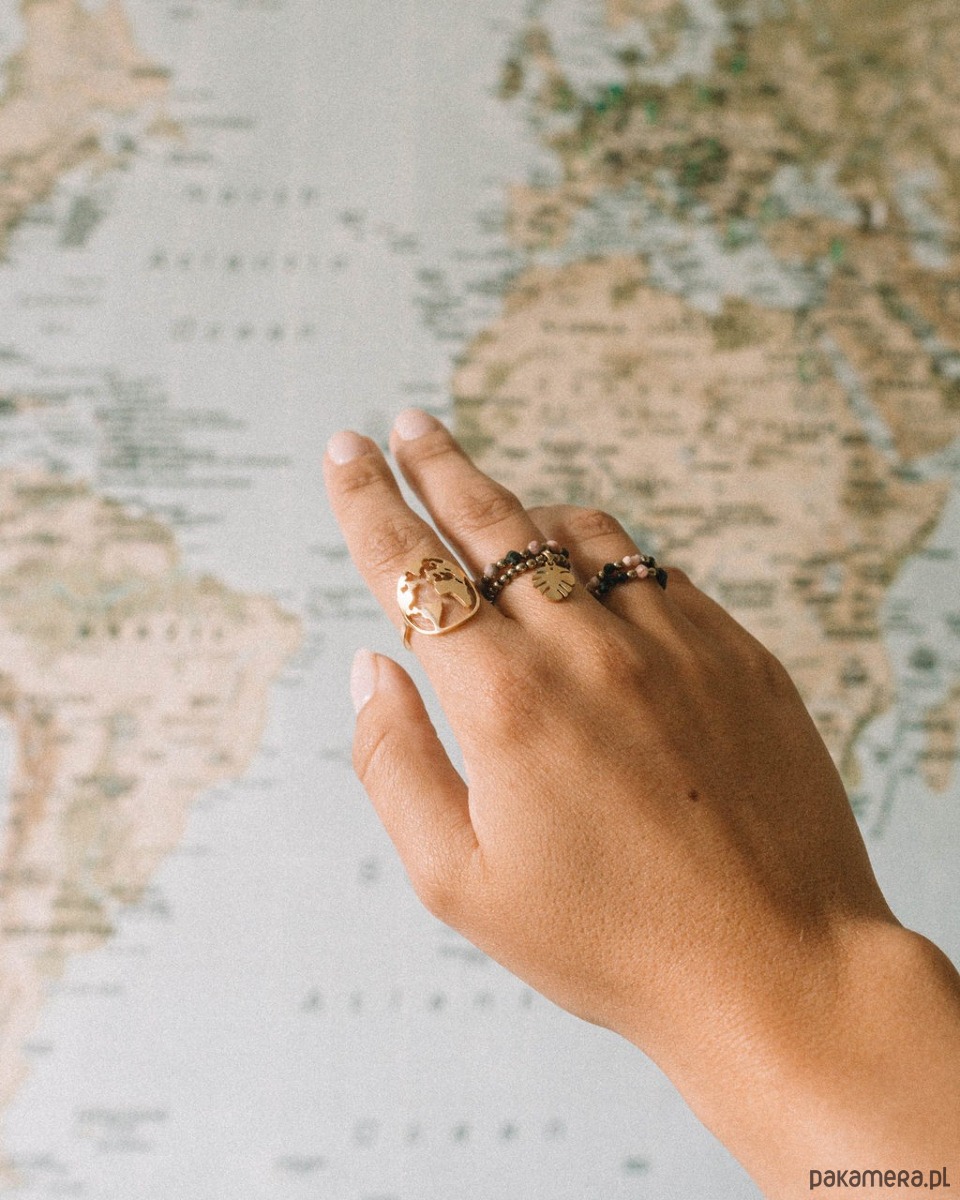 Pozłacany pierścionek Mapa świata