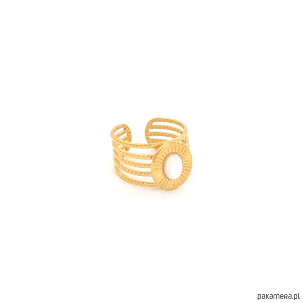 Pierścionek wykonany jest z wysokiej jakości pozłacanej stali szlachetnej z oczkiem z masy perłowej, która jest materiałem antyalergicznym.Pozłocenie nie zmienia koloru podczas użytkowania.