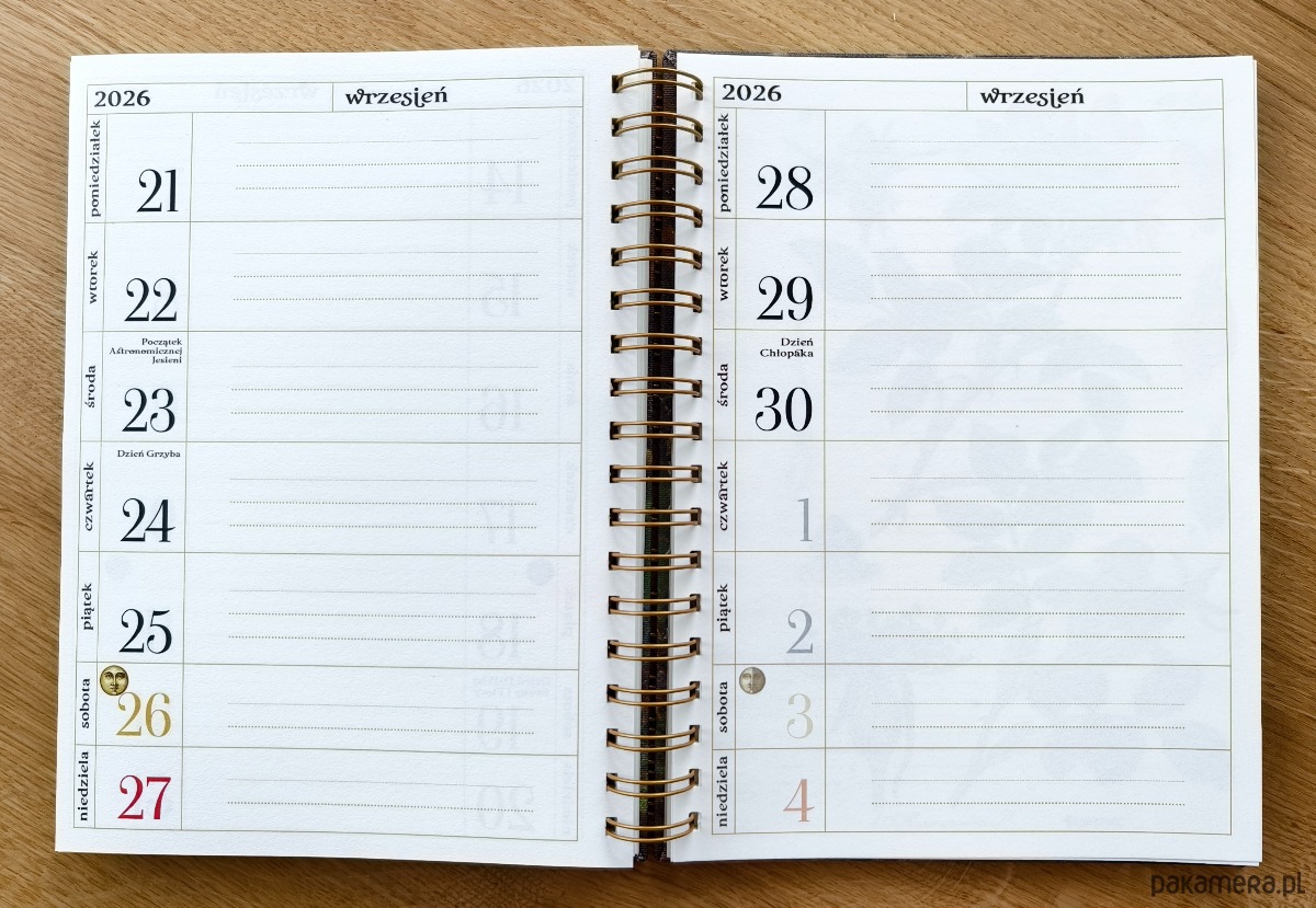 Format B5 – 25×17,5 cm. Kalendarz przenośny z planerem i miejscem na notatki.