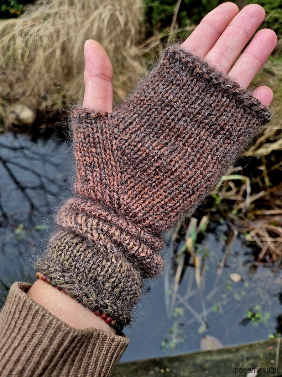 Mitenki bezszwowe, długość całkowita ok. 25-26 cm.