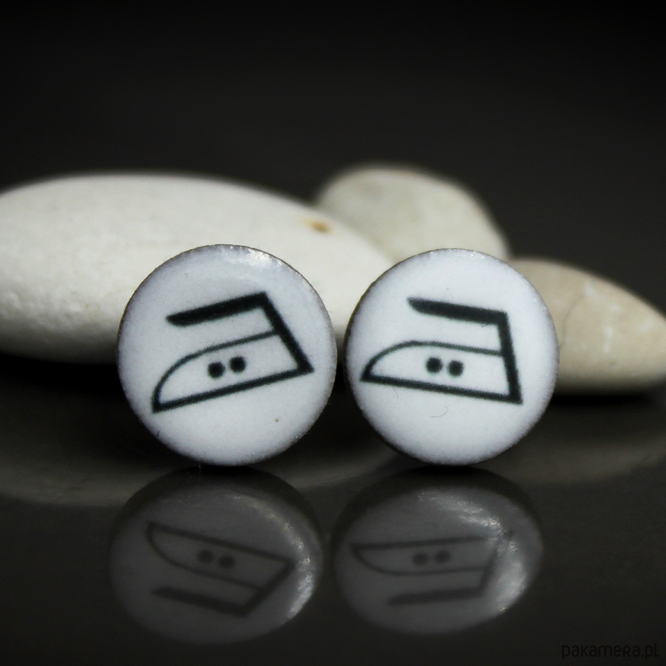 Ceramiczne okrągłe kolczyki, ręcznie wykonane z delikatnej gliny kamionkowej, jednostronnie szkliwione mieszanką białych szkliw z efektem plamek, dekorowane kalką ceramiczną,na antyalergicznych sztyftach w kolorze srebrnym. Średnica ok. 11mm. Polecam