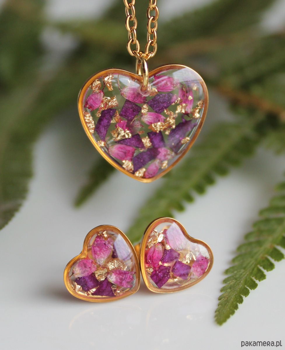 Oferuję Państwu unikalną biżuterię, wykonaną z suszonych kwiatów i żywicy epoksydowej. Biżuteria jest wspaniałym i oryginalnym prezentem na lata.