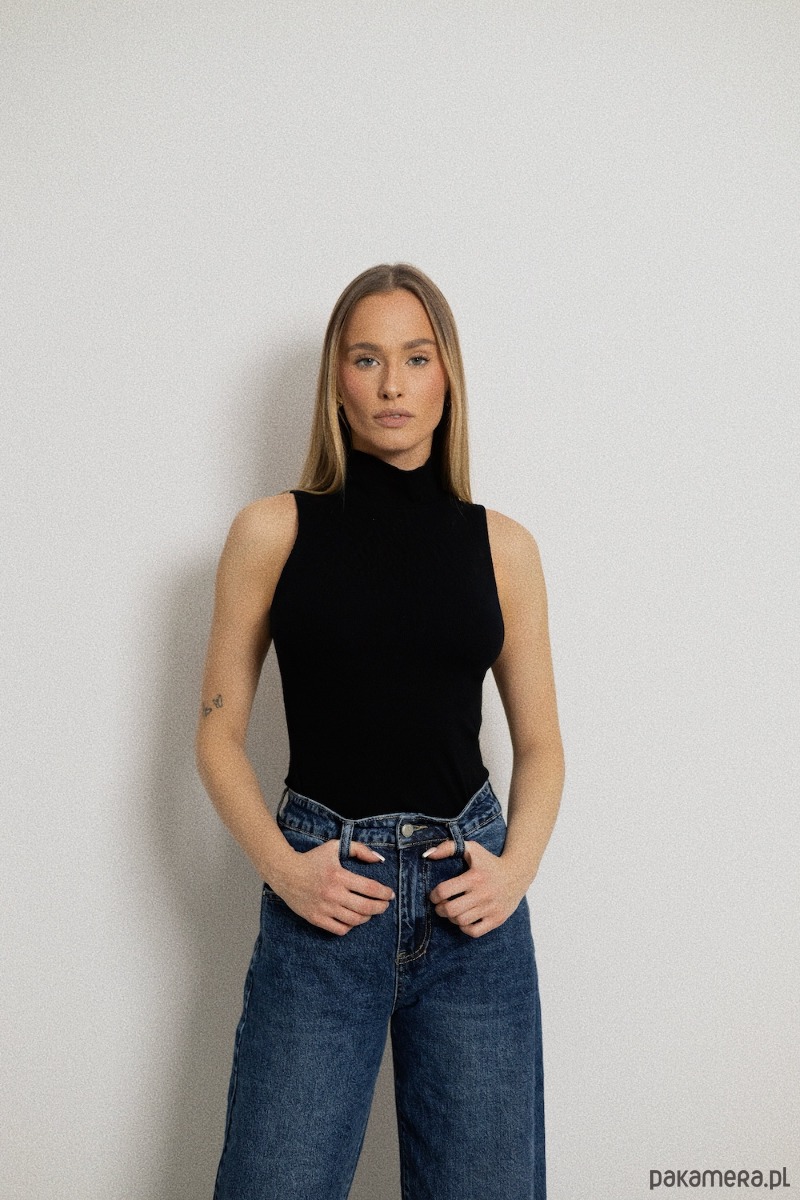 Prążkowany bezrękawnik z golfem HANNA to dopasowany top wykonany z miękkiej, elastycznej i mocno rozciągliwej dzianiny prążkowanej (ribb), która idealnie dopasowuje się do sylwetki i podkreśla figurę. Wysoki, minimalistyczny golf dodaje elegancji i sprawia, że model świetnie sprawdza się zarówno do codziennych, jak i bardziej szykownych stylizacji.