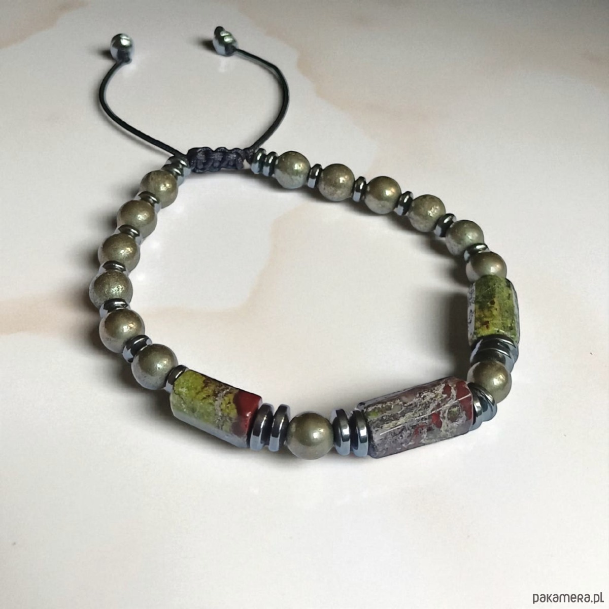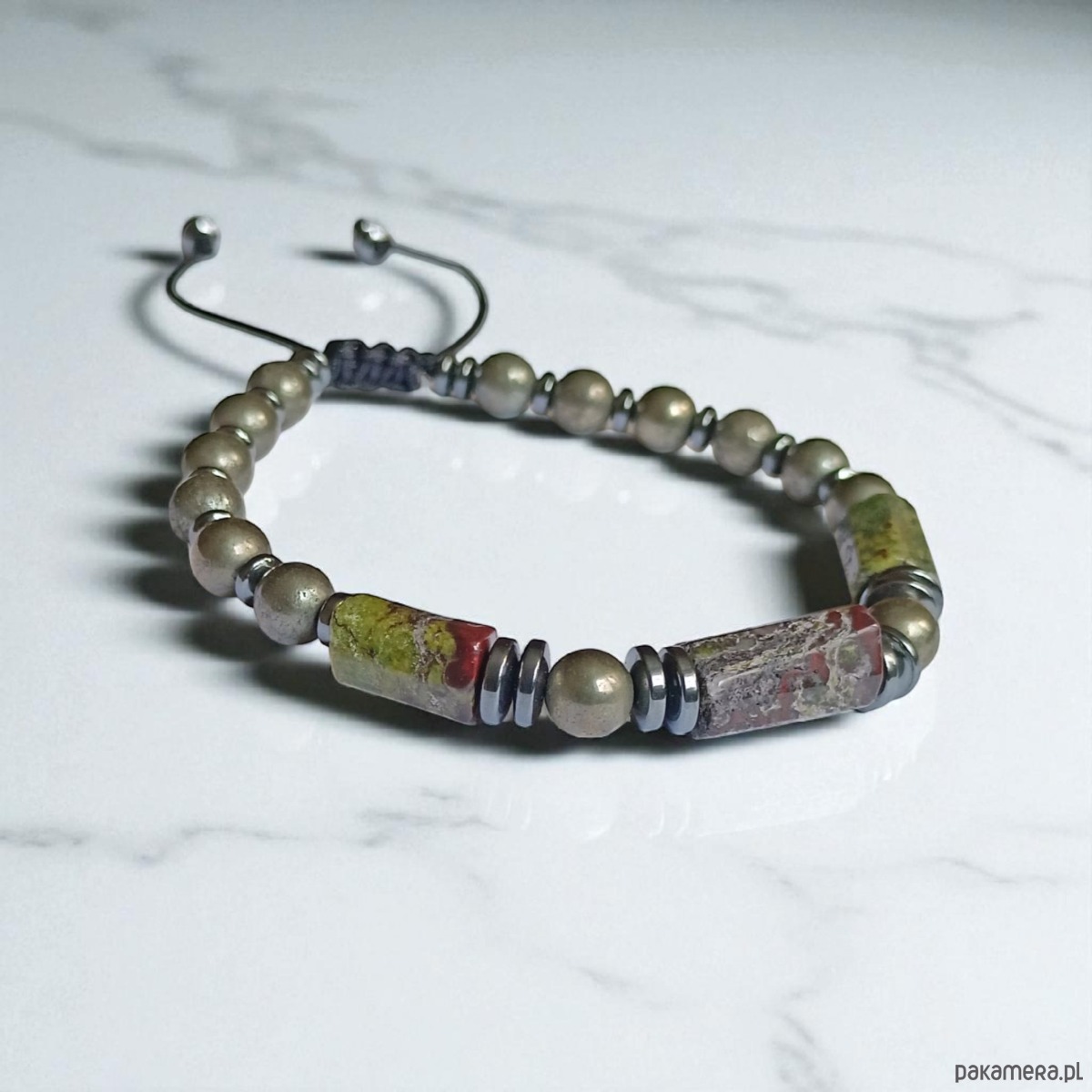 PREMIUM : jaspis smocza krew i piryt : długość regulowana