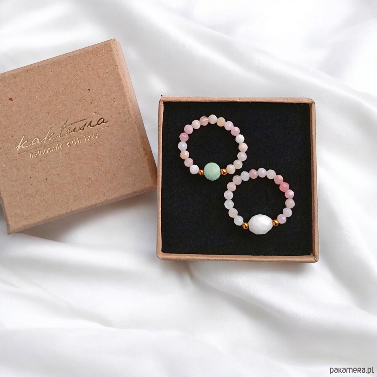 PREMIUM : zestaw pierścionków : cukierkowy : opal, amazonit, k.księżycowy