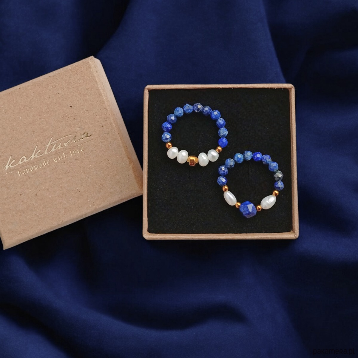 PREMIUM : zestaw pierścionków : lapis lazuli, perły