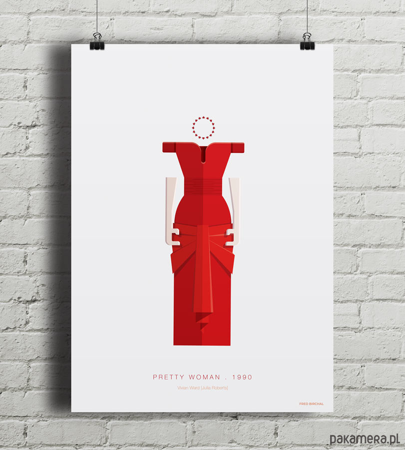 Plakat z autorską grafiką inspirowaną filmem "Pretty Woman, reż. Garry Marshall. Pochodzi z serii "Cinema Costumes" (Kostiumy kinowe) i przedstawia strój Vivian Ward.