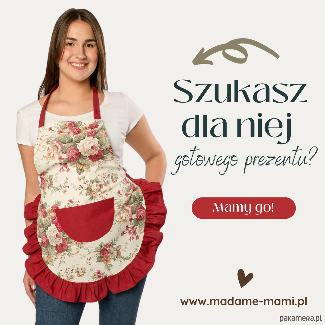 Fartuszek od Madame Mami spełni oczekiwania kobiety ceniącej dobry design, jakość, funkcjonalność, lubiącej swój dom i pragnącej wyglądać w nim pięknie! To trafiony prezent, który tworzy dobry klimat domu!