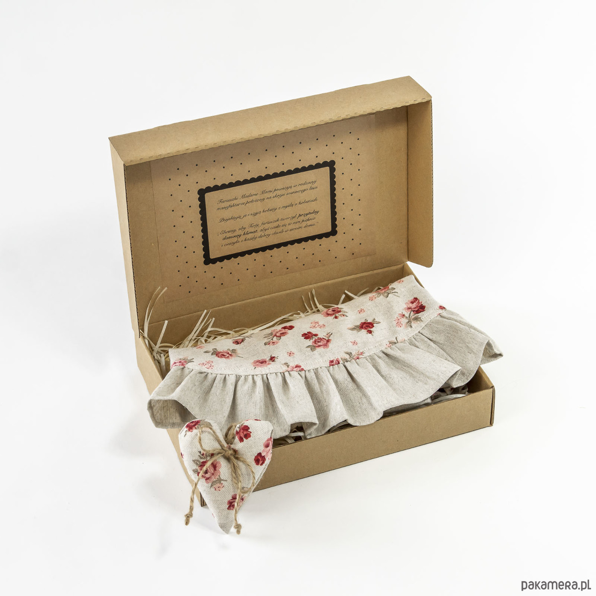 Serduszko jest wykonane z tej samej tkaniny, co fartuch, co przekłada się na spójny i elegancki wizerunek podarunku i ma symbolizować twoje ciepłe uczucie