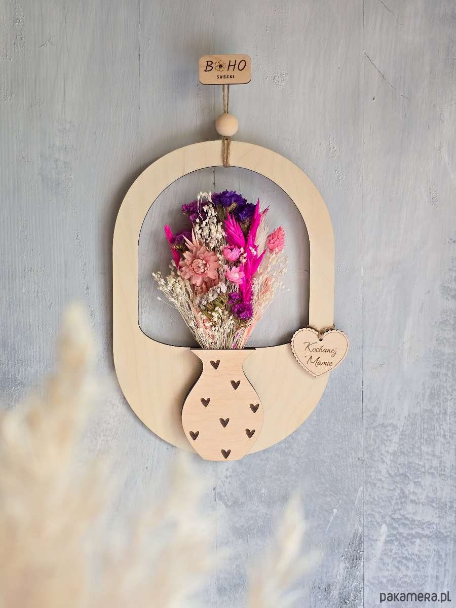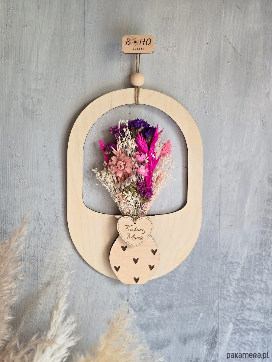Zbliża się Dzień Mamy - czas, w którym szczególnie chcemy podziękować Mamom za ich miłość i obecność. Drewniana ramka z małym wazonem i bukietem suszonych kwiatów, to gotowy prezent, który można od razu zawiesić i który zostaje na dłużej jako pamiątka.