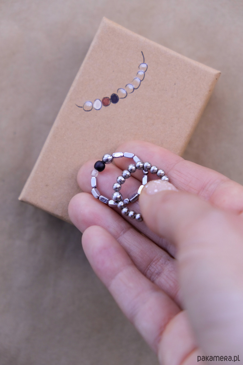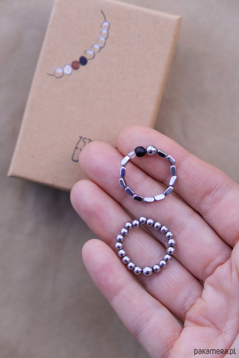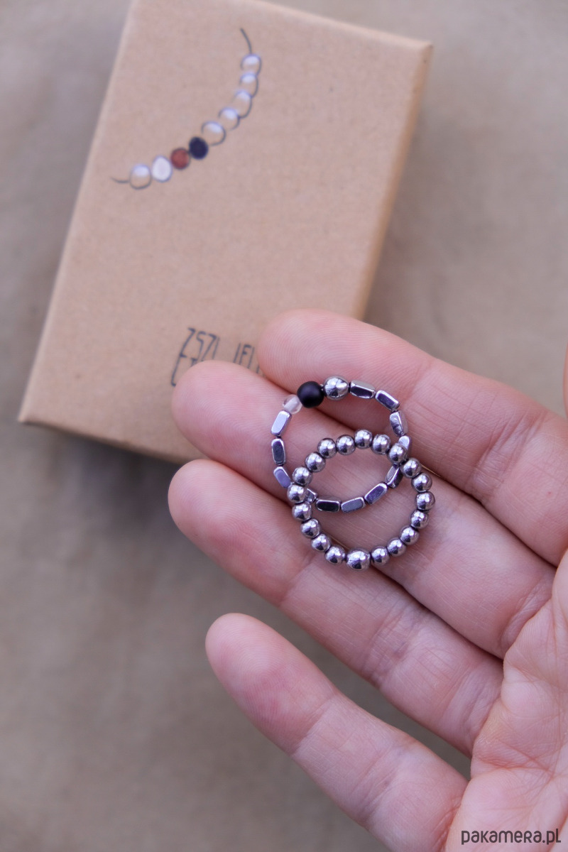 Pierścionki są subtelne, lekkie, przyjemne w dotyku. Nie rozciągają się, mają stały rozmiar, który mogę dopasować specjalnie dla Ciebie. A jeśli zdecydujesz się na gotową wersję, otrzymasz dwa pierścionki o średnicy 16 mm (rozmiar jubilerski 13).