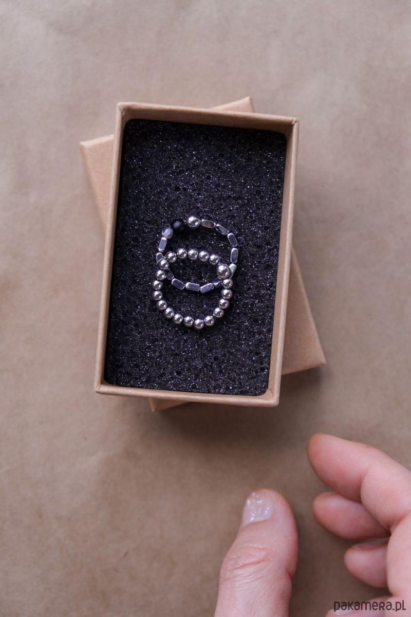 Kamyczki mają tylko 2–4 mm, więc całość jest subtelna, niemal niewyczuwalna na palcu. Kolory? Srebro, czerń i delikatna przezroczystość. Pasują do wszystkiego – od codziennych stylizacji po wyjątkowe okazje. Co więcej, są odporne na wodę, więc nie musisz ich zdejmować nawet podczas deszczowych dni.