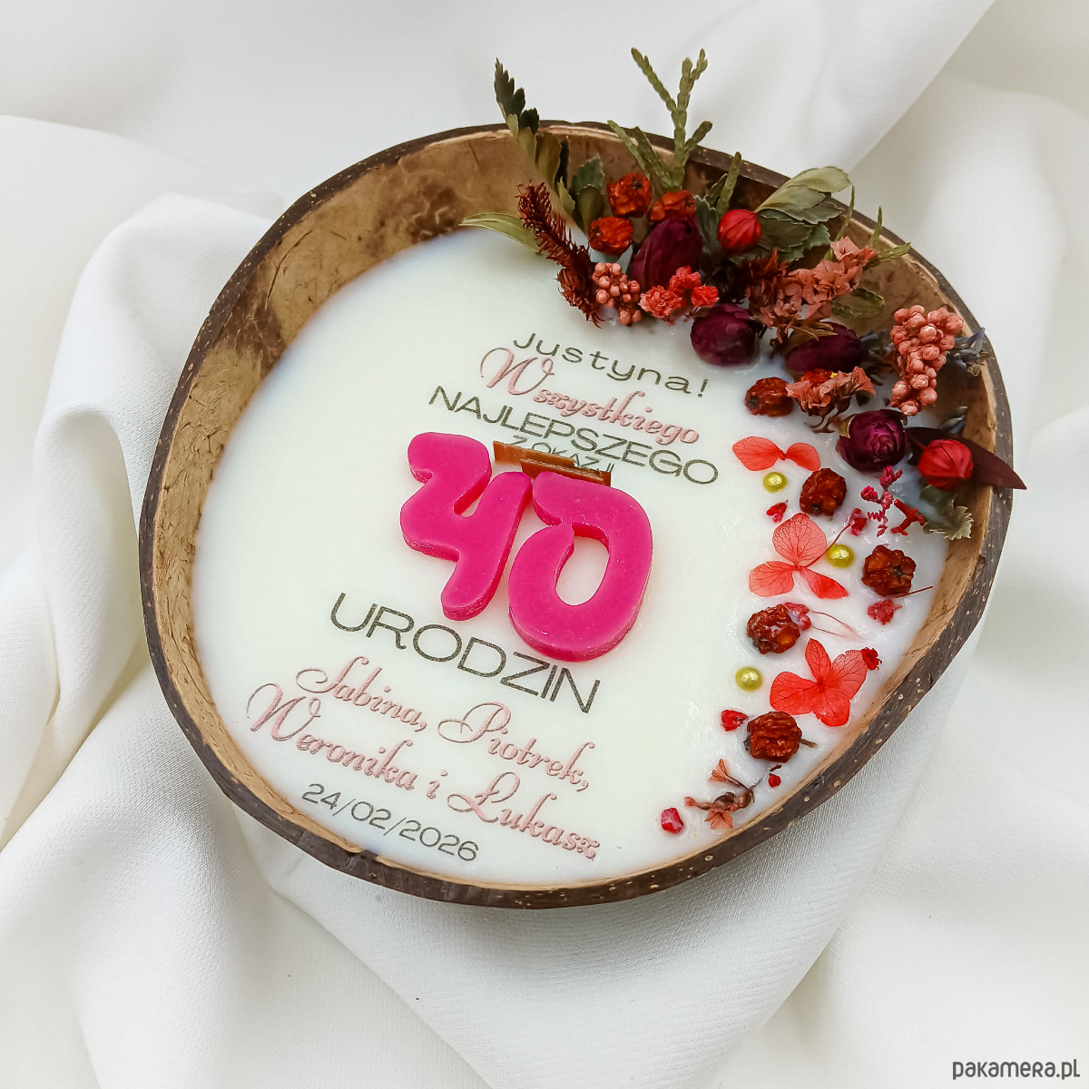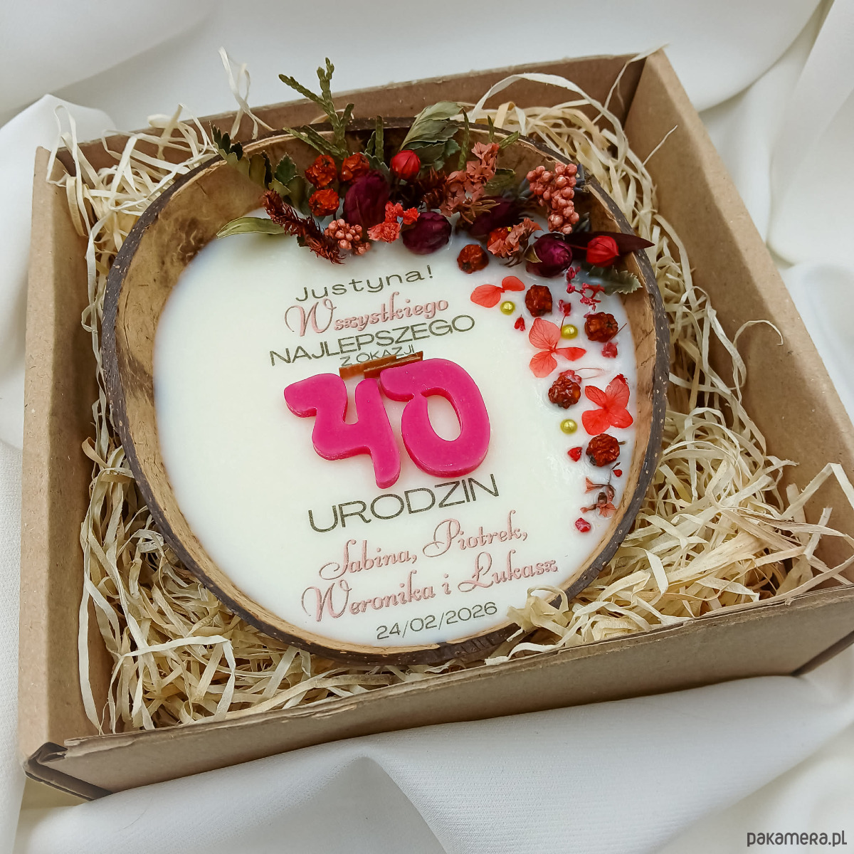 Z przyjemnością prezentujemy świecę, która jest idealnym prezentem na 40 urodziny. Świeca jest stworzona z naturalnych materiałów, a jej wyjątkowy projekt podkreśla zarówno estetykę, jak i osobisty charakter.