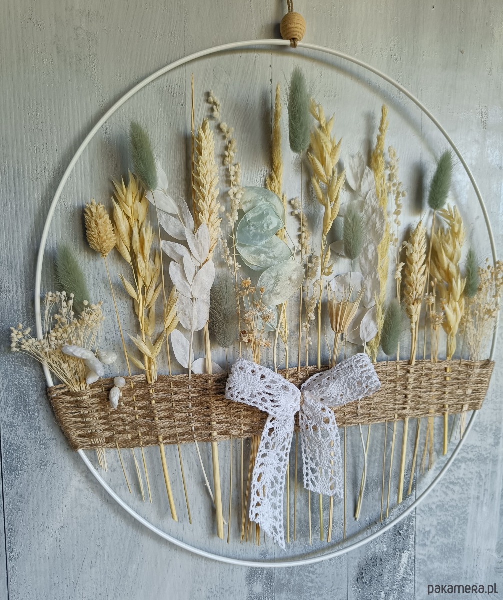 Na zdjęciu znajduje się obręcz o średnicy 35 centymetrów. Zdjęcie ma charakter poglądowy, zamówiona obręcz może się nieznacznie różnić - każda obręcz wykonywana jest ręcznie, dlatego jest niepowtarzalna i wyjątkowa.