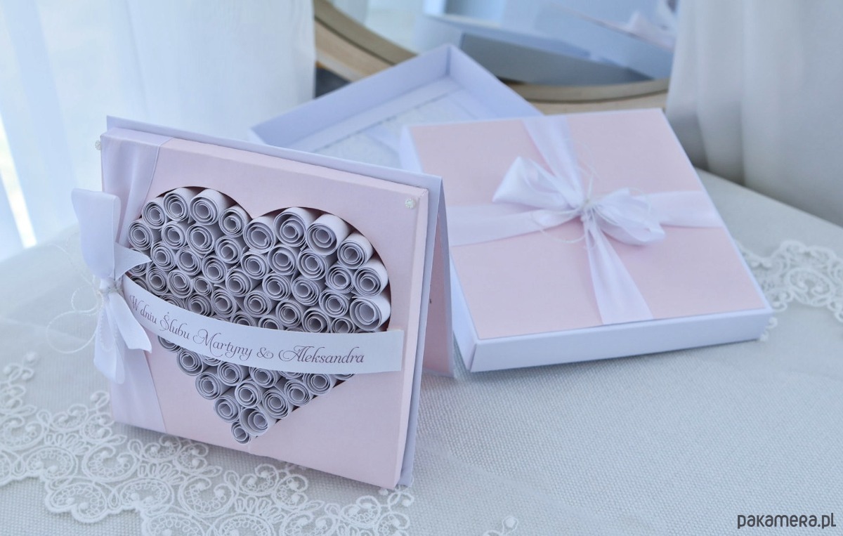 Kartka w pudełku na ślub – elegancki prezent „na już”. Personalizacja: imiona, data, życzenia, opcjonalnie kieszonka na pieniądze. Spokojna estetyka i romantyczne serce sprawiają, że to prezent, który zachwyca i zostaje na lata.