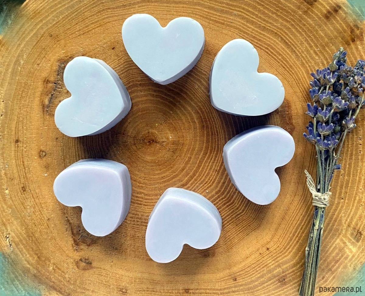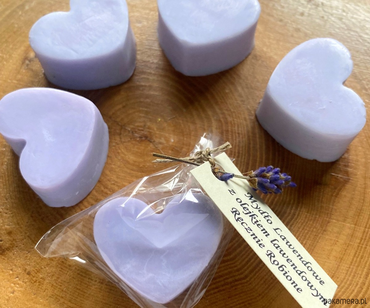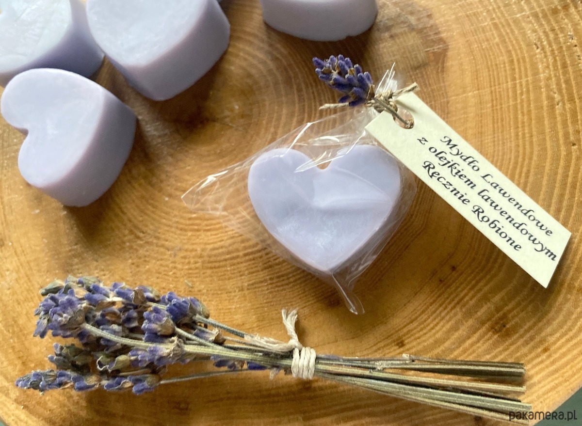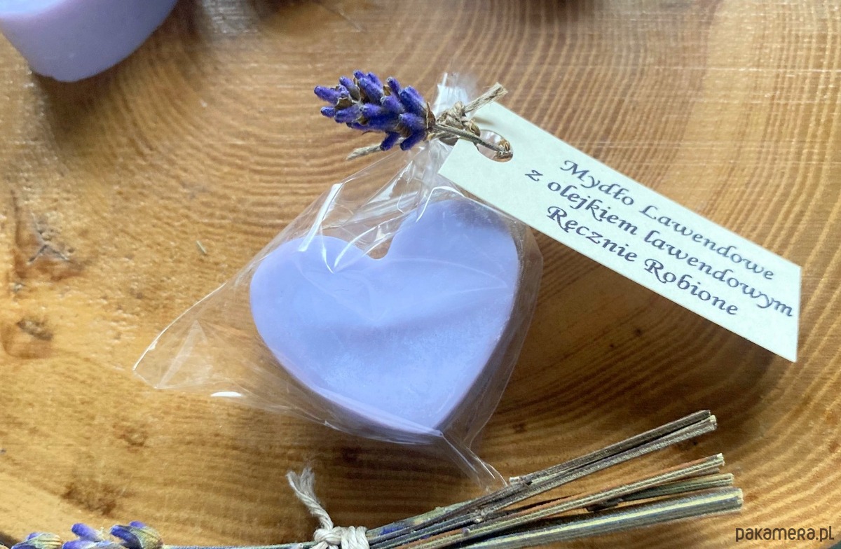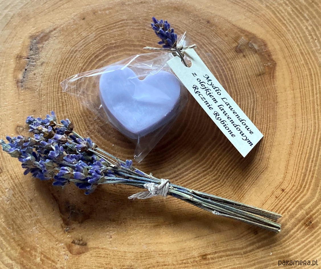 Mydełko fioletowe serce lawendowe to oryginalny, niepowtarzalny upominek dla gości w ramach podziękowań, właściwie na każdą okazję: - Chrzest, Roczek, Pierwsza Komunia Św, Ślub,Wesele, Urodziny, Baby Shower, Wieczór Panieński, Upominek od firmy dla pracowników itp. Mydełko powstaje na polu lawendowym na mazurach, zawiera olejek lawendowy i pięknie pachnie. Wykonane na bazie z najwyższej jakości składników. Będzie pięknie prezentowało się na stole i w łazience. UWAGA! Suszone gałązki lawendy przesyłamy w pudełeczku do samodzielnego włożenia pod sznureczek - zajmuje to tylko chwilę a efekt jest naprawdę piękny! Dowolny napis na karteczce w cenie - drukujemy na papierze ecru i dowiązujemy zawieszkę do każdego mydełka. Jeden dowolny tekst na wszystkie mydełka - dedykacja, podziękowanie, wierszyk, imiona pary młodej itd. Każde mydełko jest oddzielnie zapakowane, przewiązane sznureczkiem plus zawieszka, waga 10g.