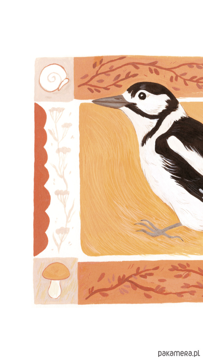 Delikatna, szczegółowa ilustracja malowana gwaszem. W serii dostępne 5 ilustracji odpowiadających różnym porom roku.