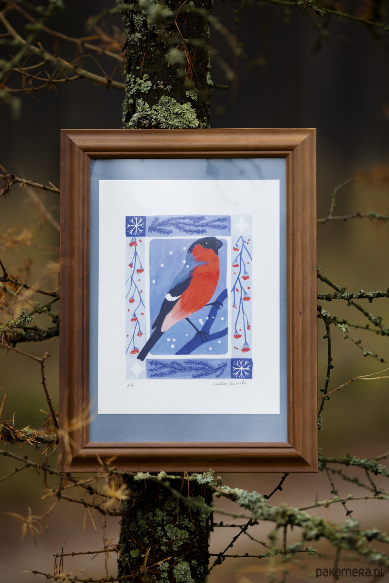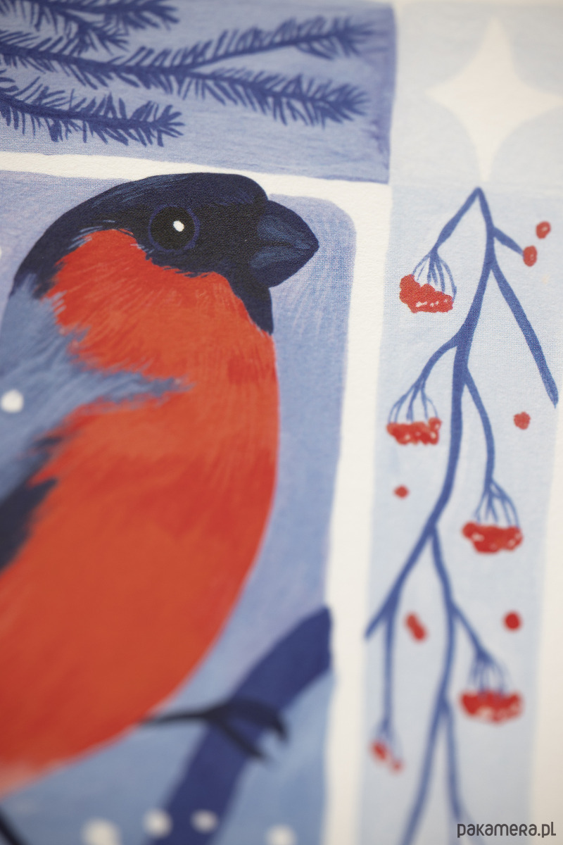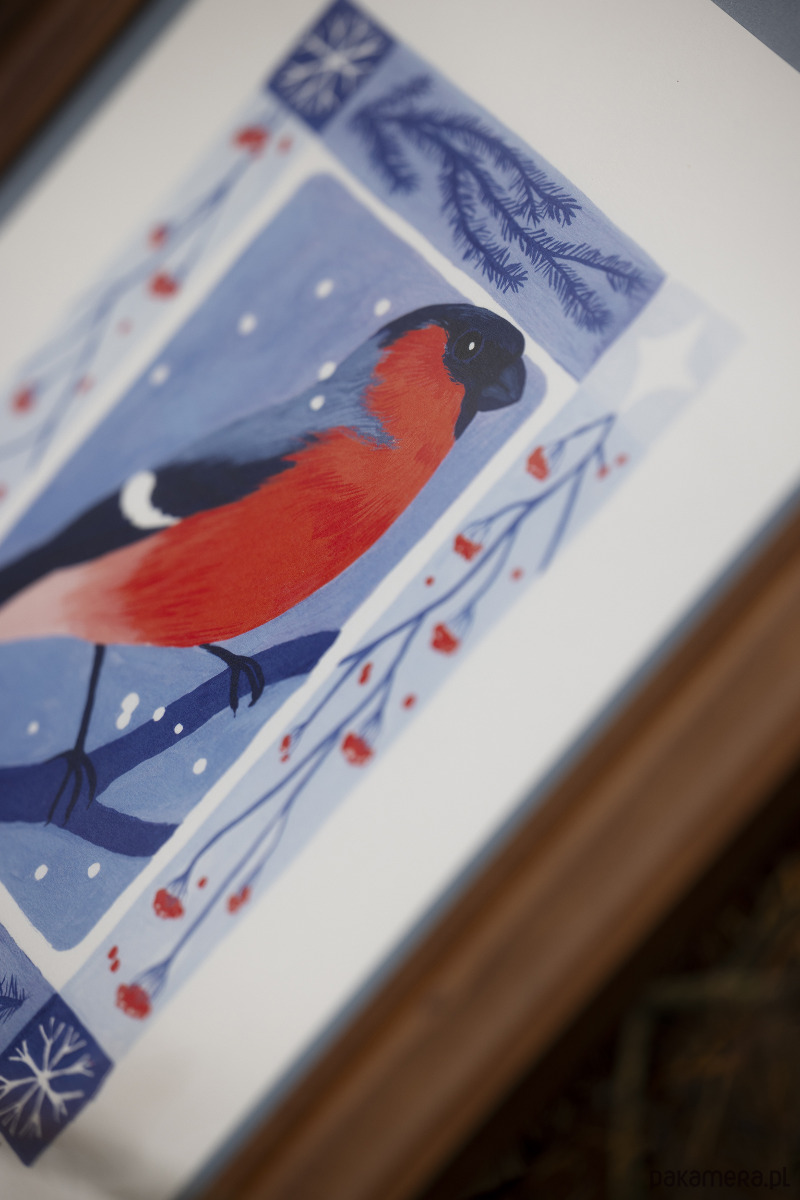 Delikatna, szczegółowa ilustracja malowana gwaszem. W serii dostępne 5 ilustracji odpowiadających różnym porom roku.