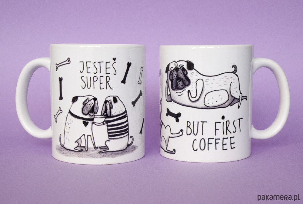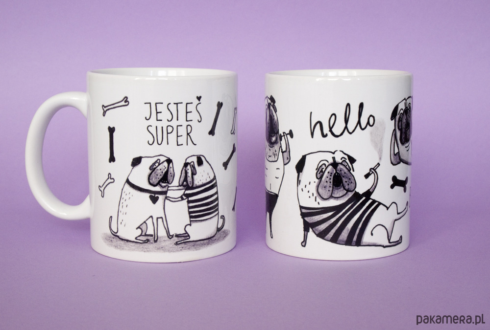 Komplet kubków z Mopsami