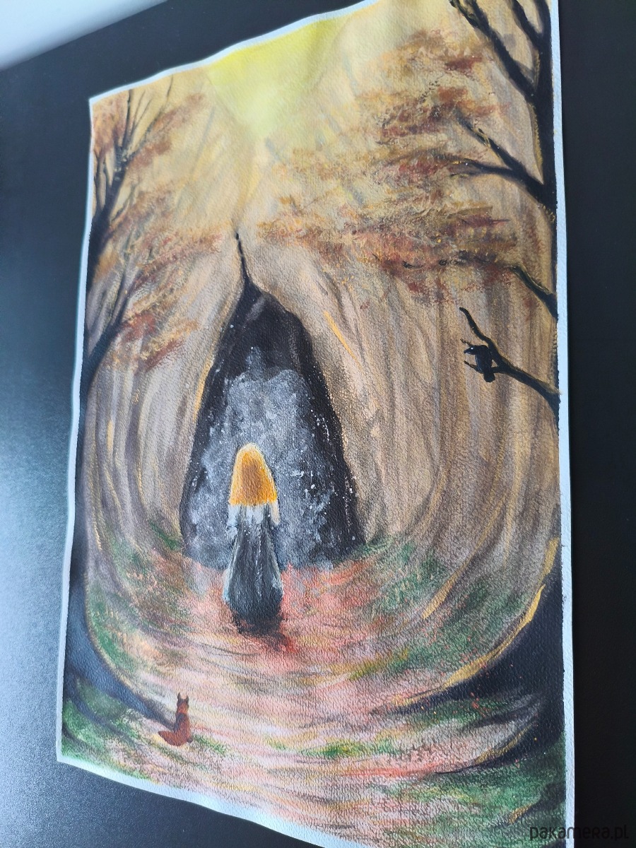 Technika: Połączenie klasycznej akwareli z metalicznymi akcentami oraz detalami z tuszu, które nadają pracy subtelny blask i głębię.