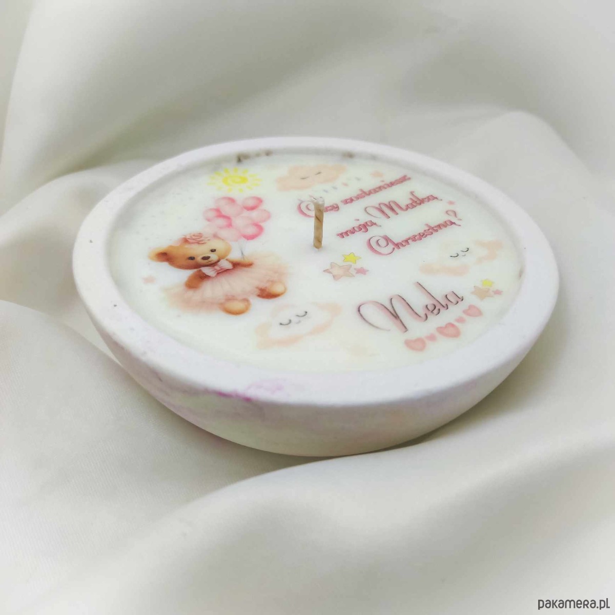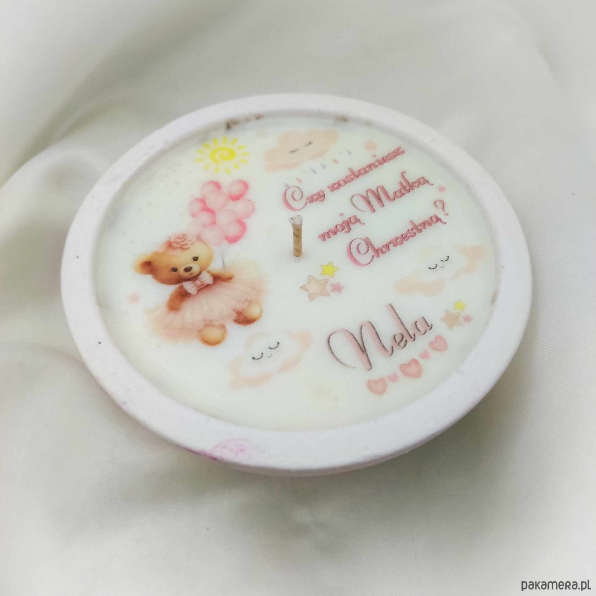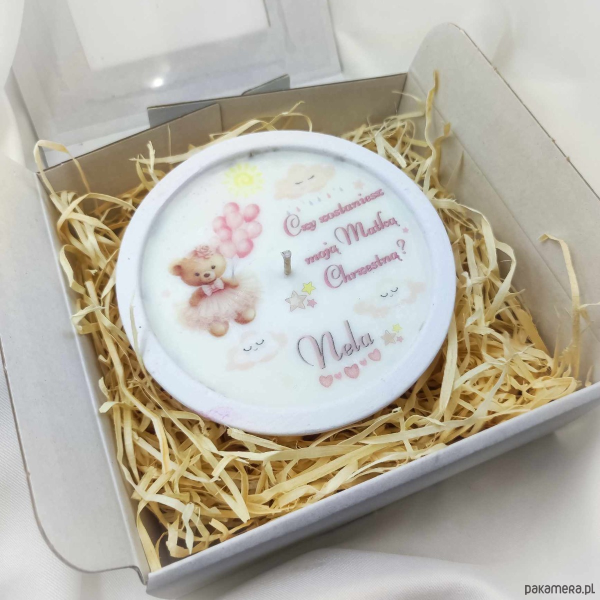 Doskonałym pomysłem jest personalizowana świeca z pytaniem "Czy zostaniesz moją Matką Chrzestną?"