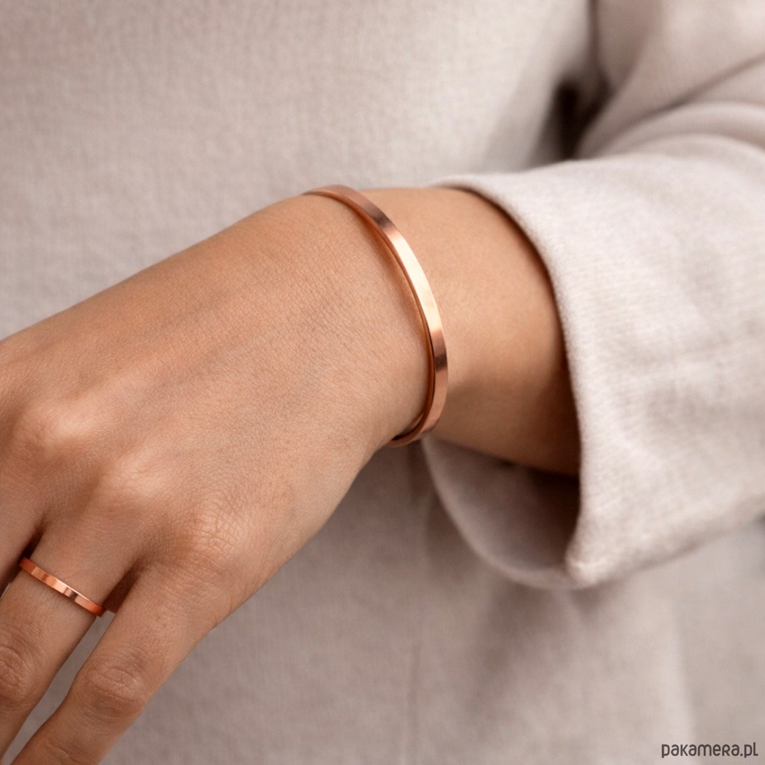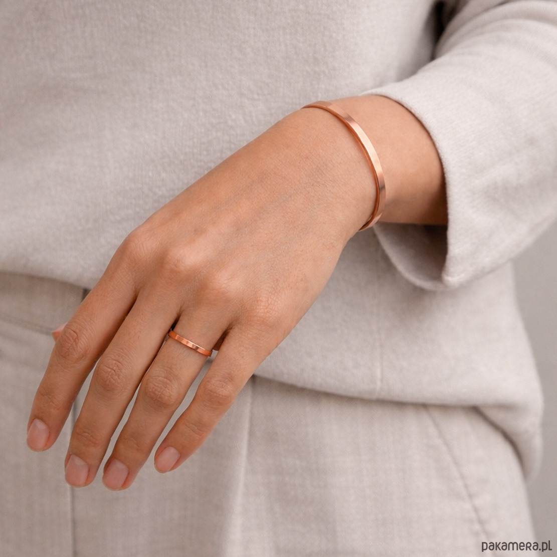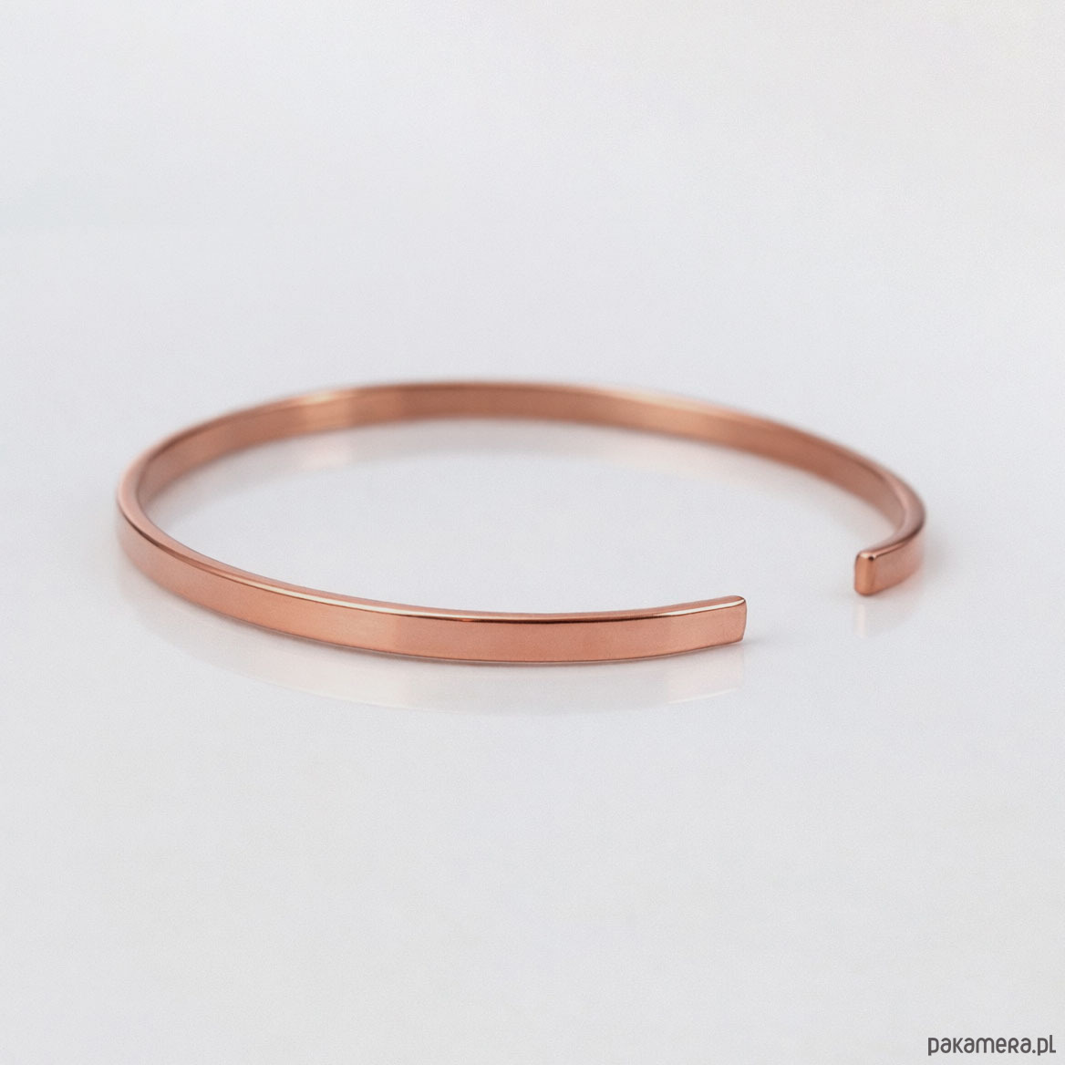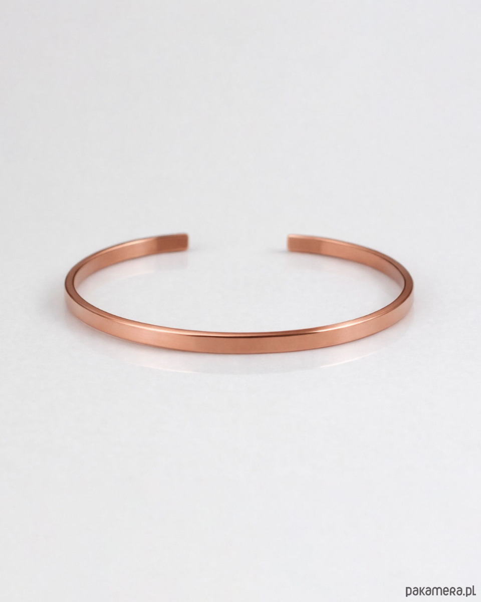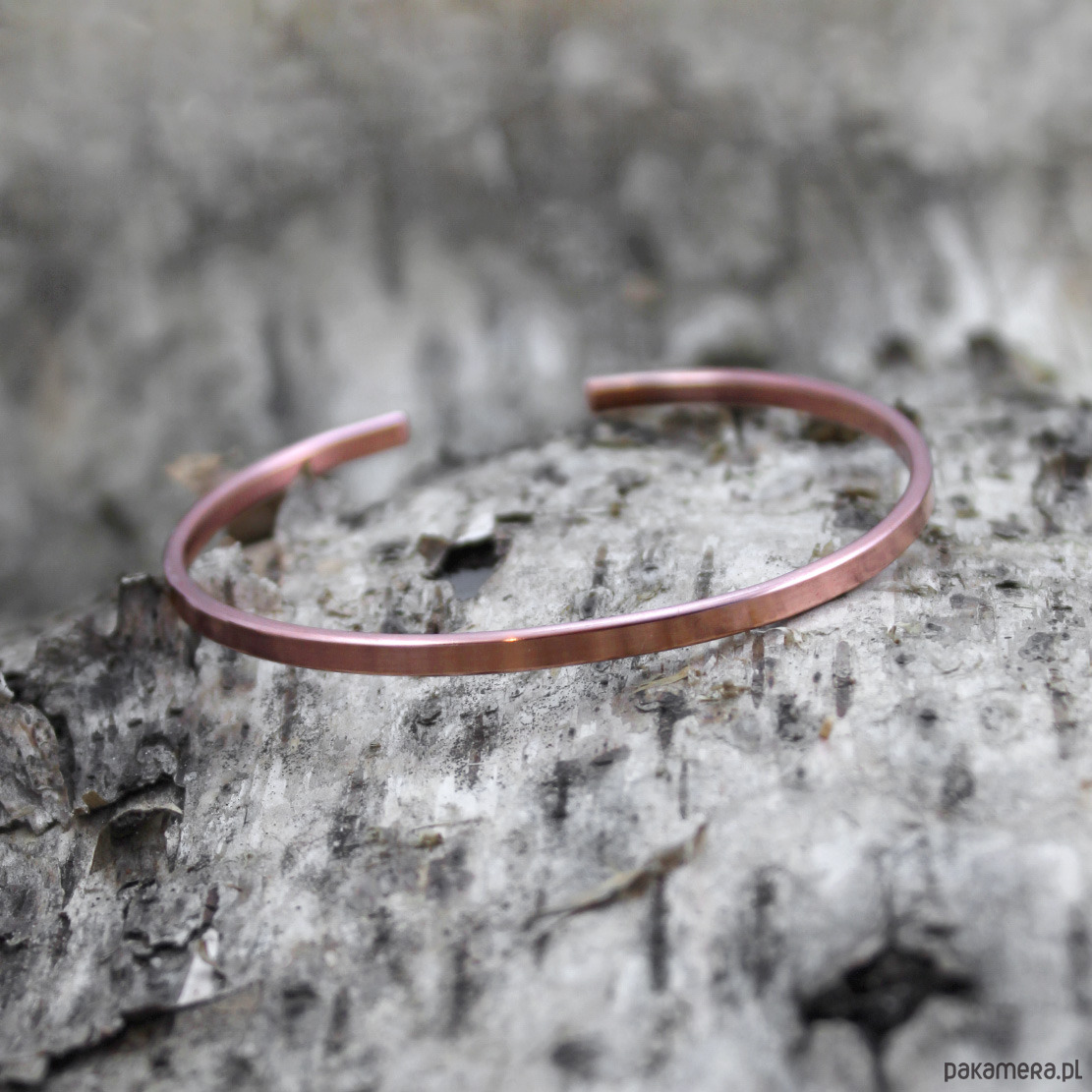 Prosta miedziana bransoleta o nieregularnej fakturze. Dzięki prostej formie może być noszona zarówno przez kobietę jak i mężczyznę. Odpowiednia na różne okazje, pasuje do swobodnych jak i eleganckich stylizacji. Doskonale nadaje się na prezent.