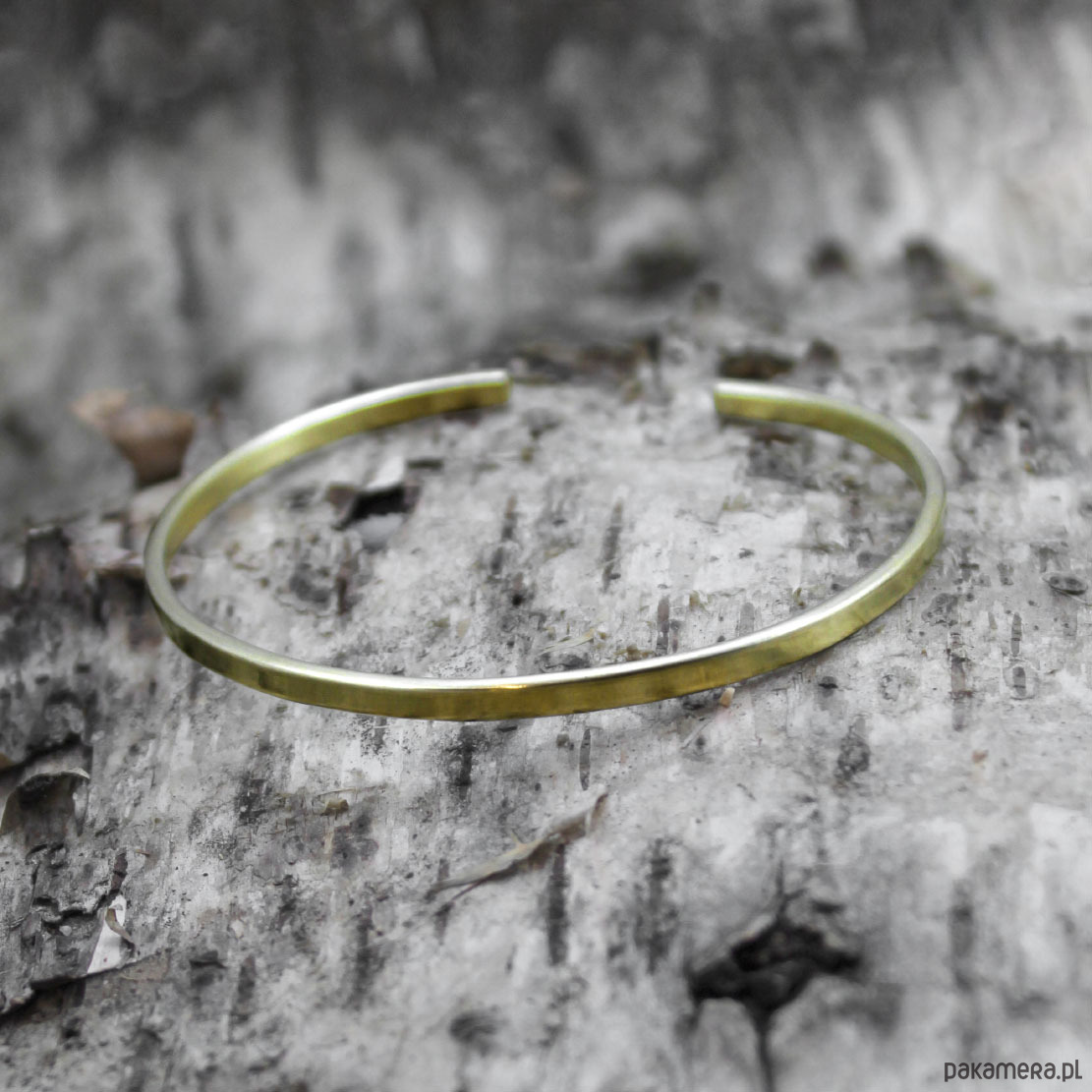 Prosta mosiężna bransoleta o nieregularnej fakturze. Dzięki prostej formie może być noszona zarówno przez kobietę jak i mężczyznę. Odpowiednia na różne okazje, pasuje do swobodnych jak i eleganckich stylizacji. Doskonale nadaje się na prezent.