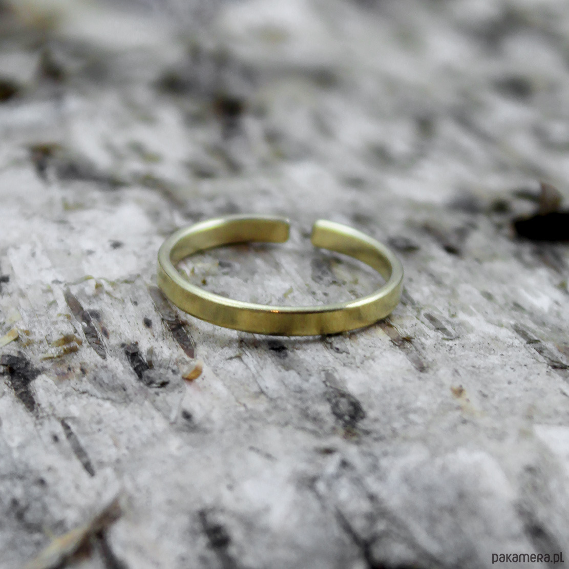 Pierścionek został wykonany z mosiądzu, jego szerokość to ok 0,25 cm.