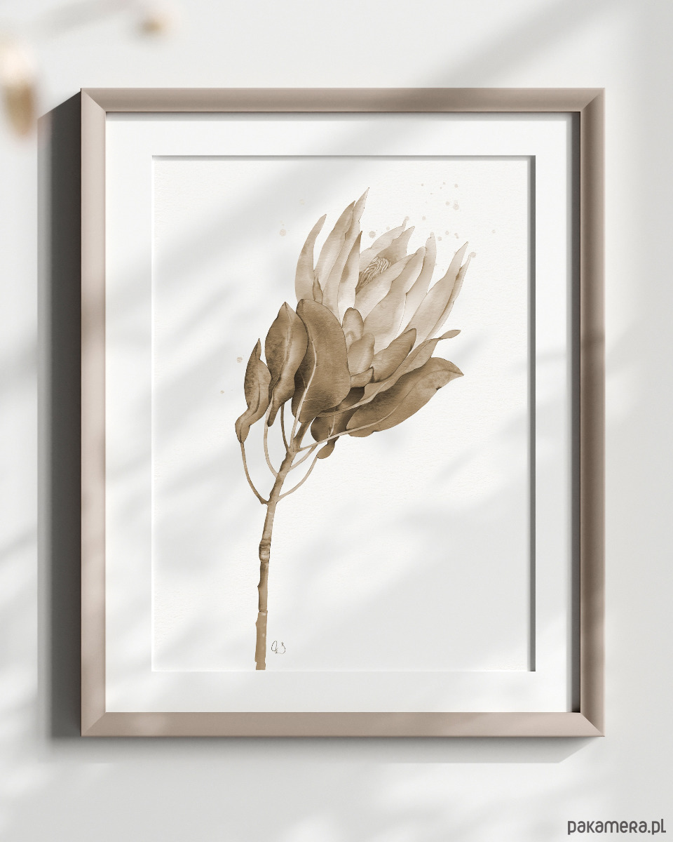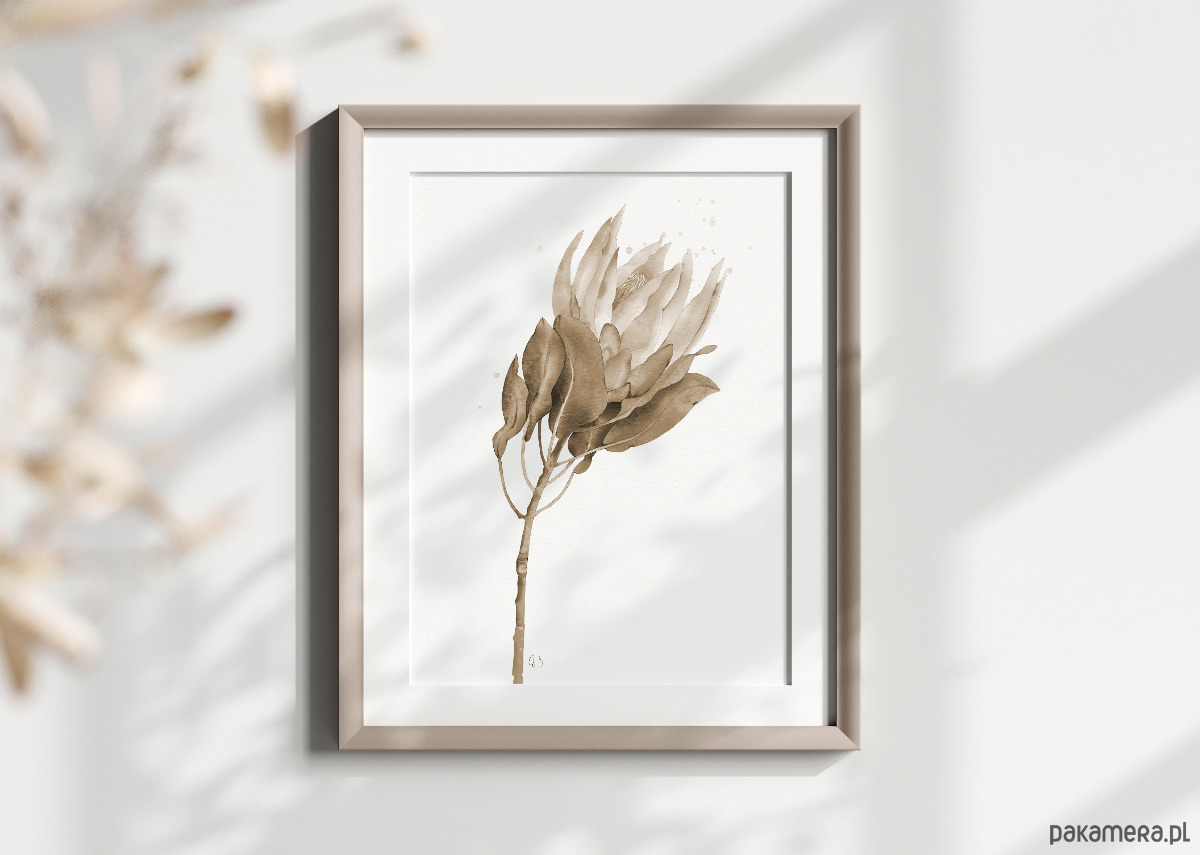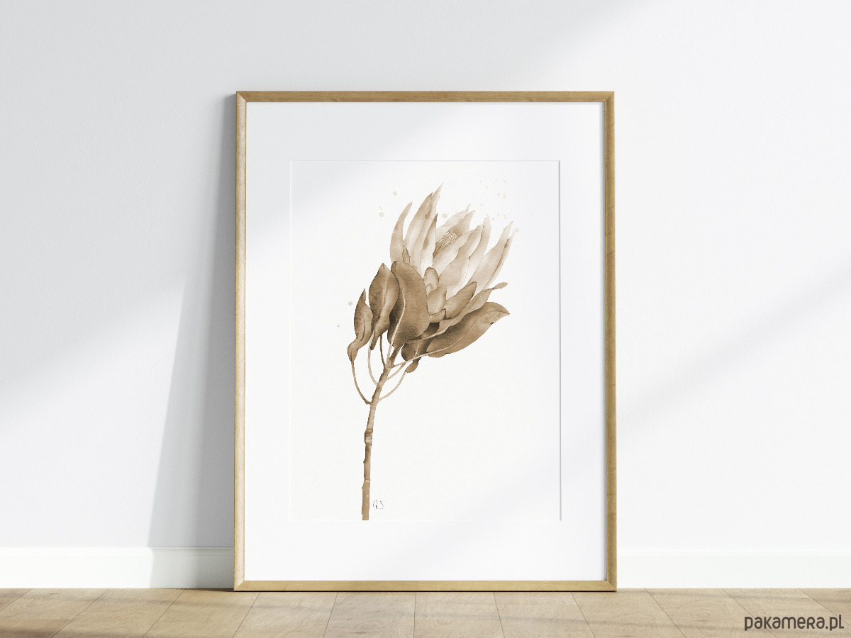 Protea, grafika, akwarela - sepia