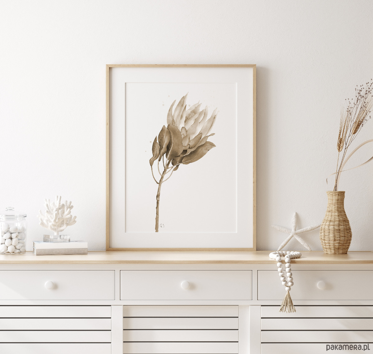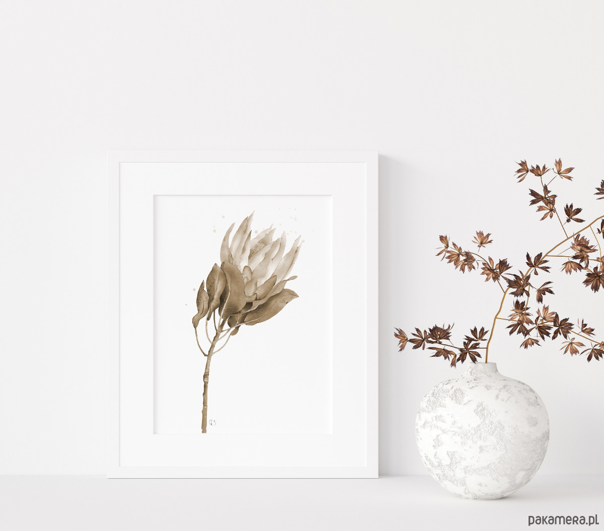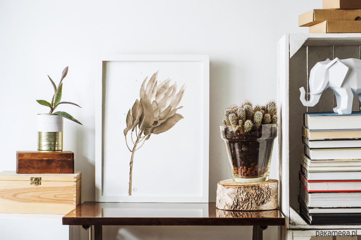 Protea, grafika, akwarela - sepia