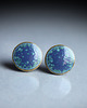 Ceramiczne kolczyki w formie sztyftów, ręcznie wykonane z delikatnej gliny kamionkowej, jednostronnie szkliwione mieszanką szkliw w kolorze błękitu i zieleni , z efektem plamek, na antyalergicznych sztyftach w kolorze srebrnym. średnica ok. 11mm.Polecam