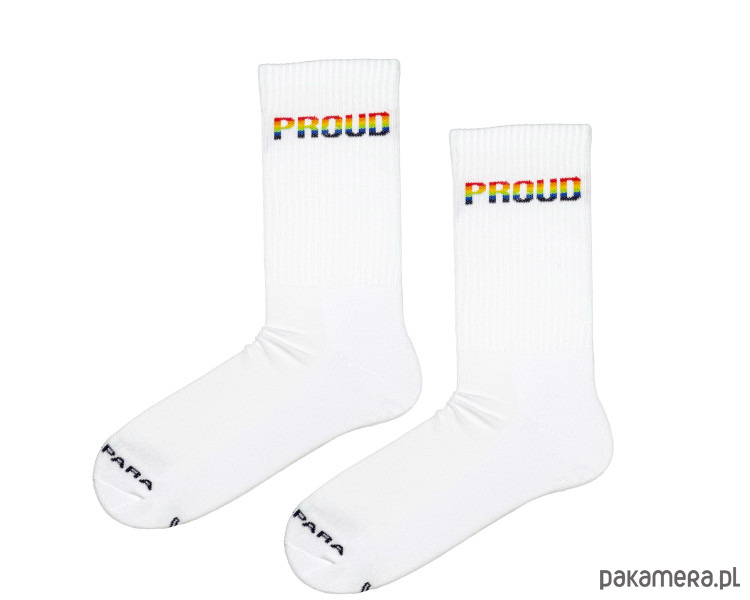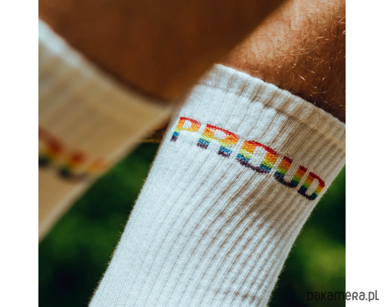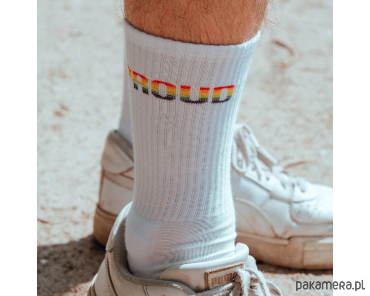 Nasze białe skarpetki PROUD zostały zaprojektowane, by celebrować miesiąc dumy i wsparcie dla społeczności LGBT+. Napis PROUD w tęczowych barwach symbolizuje dumę, różnorodność i akceptację, które są kluczowe dla ruchu na rzecz równości. Pride Month, obchodzony każdego czerwca, jest okazją do świętowania postępów na rzecz równości osób LGBT+ oraz przypominania o historii i ciągłej walce o prawa. Został oficjalnie uznany w czerwcu 1969 roku po zamieszkach w Stonewall, które wyznaczyły początek nowoczesnego ruchu na rzecz praw LGBT+. Nasze skarpetki są wykonane z miękkiej, trwałej bawełny z technologią 200 igieł, zapewniając komfort noszenia przez cały dzień. Są idealne dla każdego, kto chce wyrazić wsparcie dla społeczności LGBT+ lub po prostu dodać odrobinę koloru i znaczenia do swojego codziennego stroju. Pokaż swój wsparcie i dumę z naszymi skarpetkami PROUD.