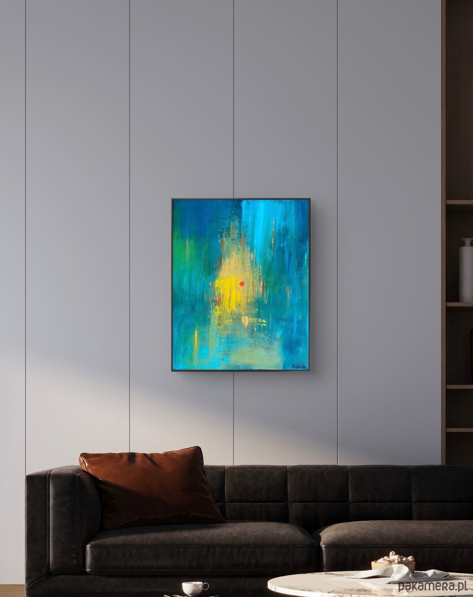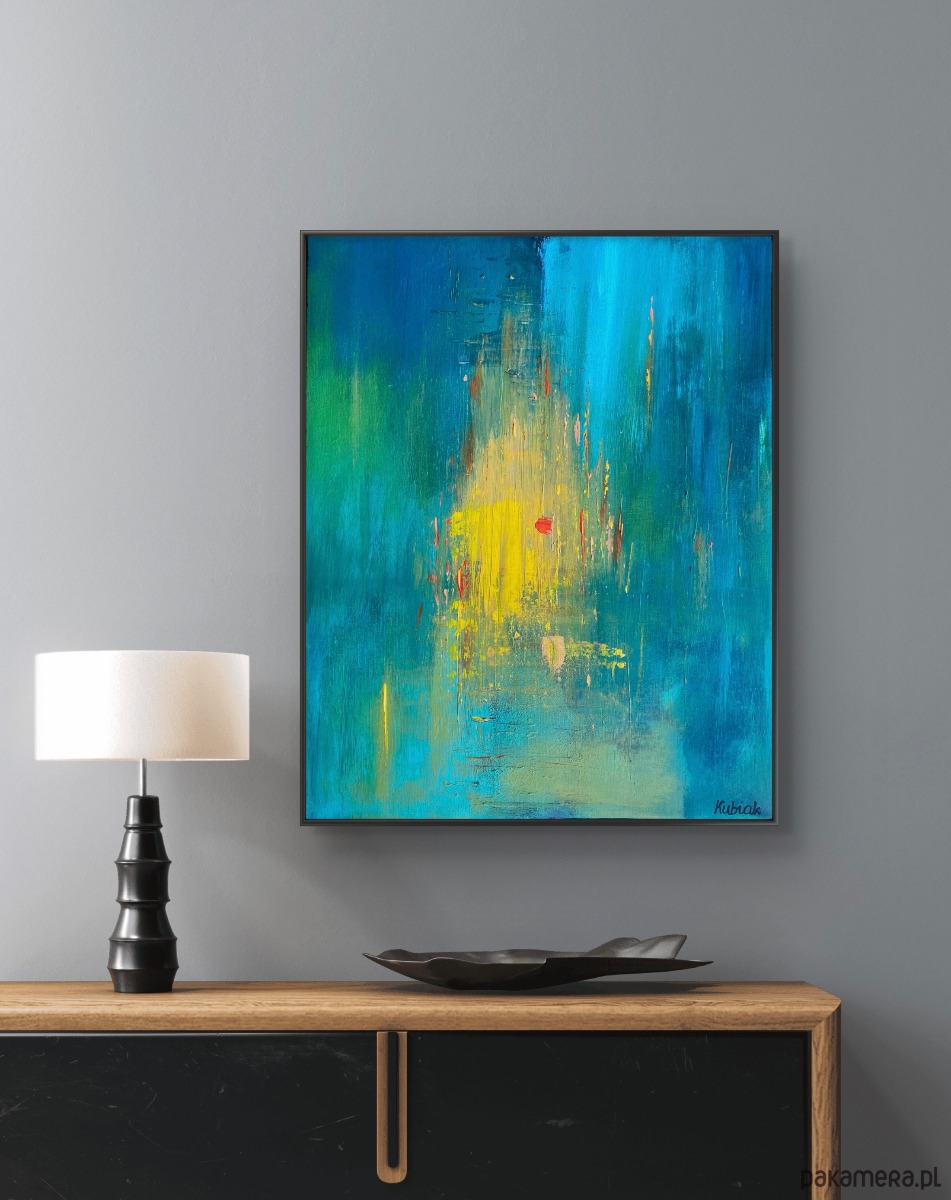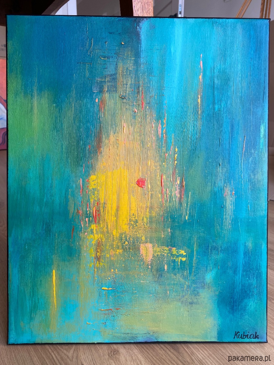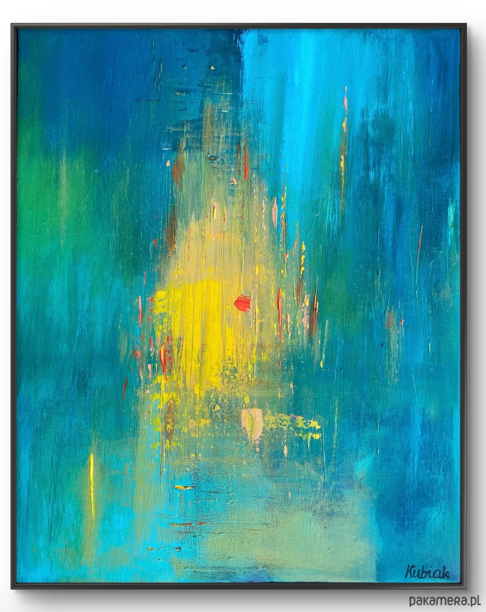 Akryl na płótnie, impast, werniks, boki zamalowane na czarno