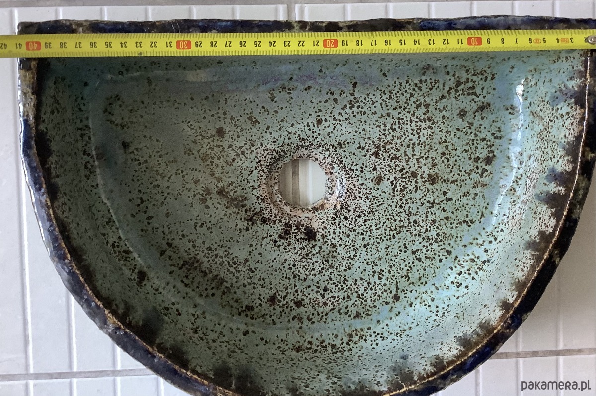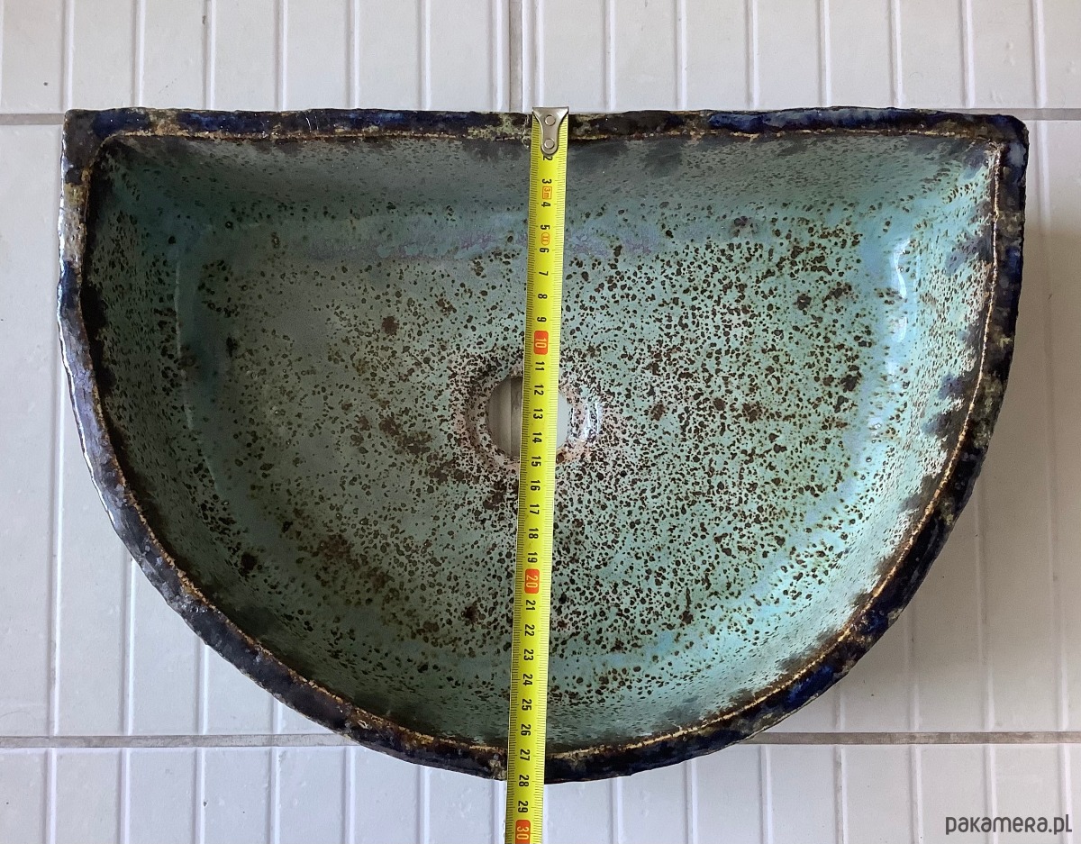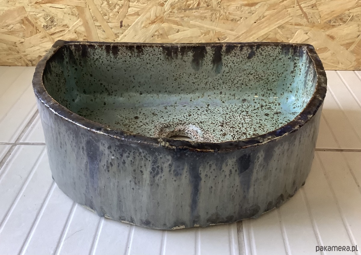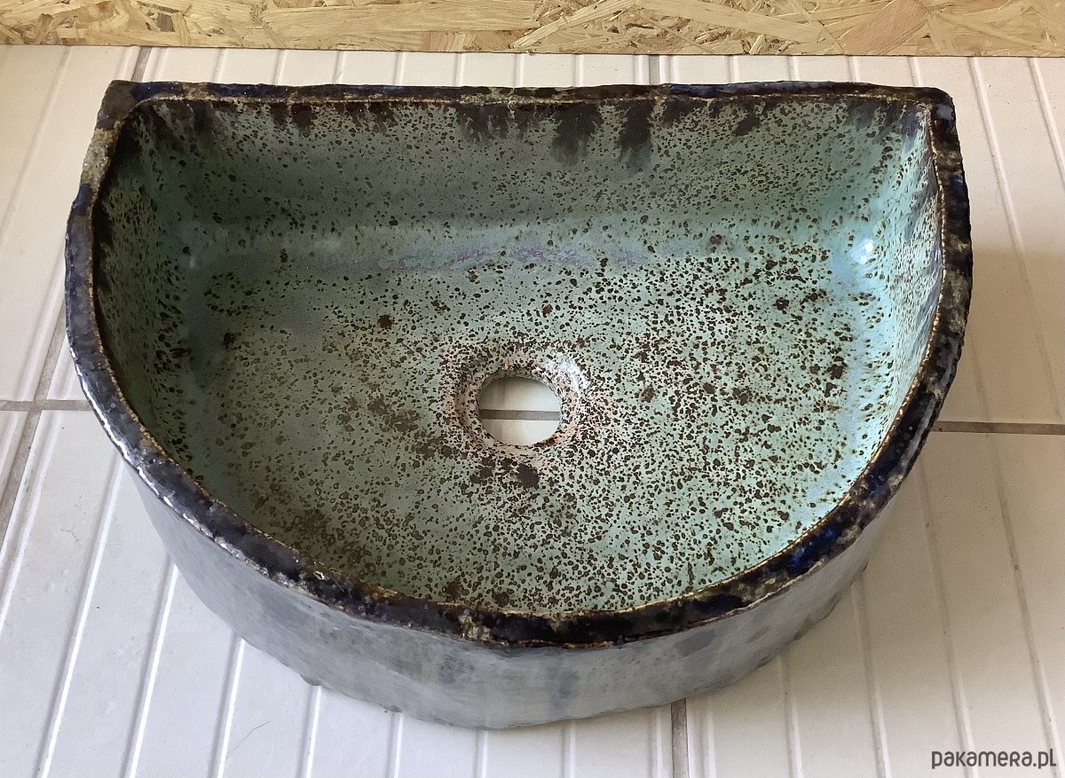 UMYWALKA JEST PRZECENIONA. W trakcie wypały na prostej ściance zrobiło się w górnej części lekkie pęknięcie. Jest wysoko i zakleiłam je klejem epoksydowym, więc nie powinno to mieć żądnego wpływau na jej użytkowość.