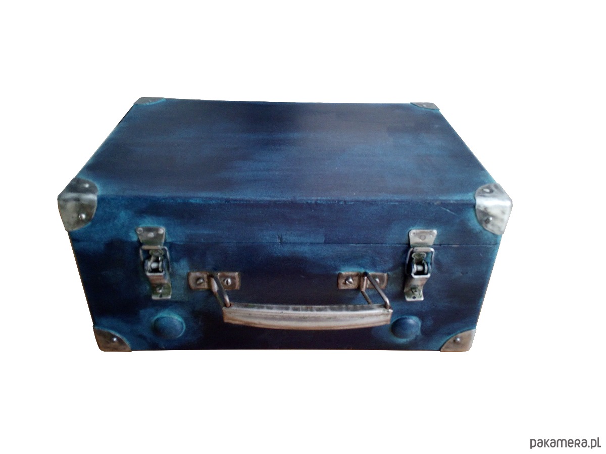 Skrzynka po totalnej rewitalizacji. Zewnętrznie w kolorze navy z niewielką domieszką turkusu, wewnątrz w nowym fornirze i wykończona lakierem mat.