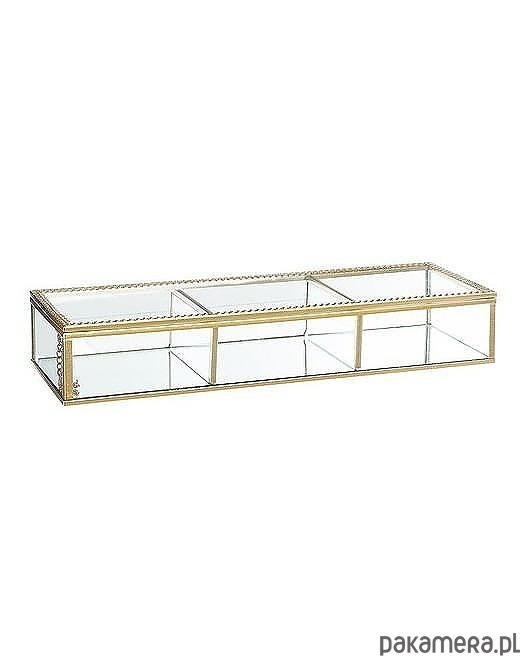 Szklana szkatułka jest praktycznym, ale przede wszystkim stylowym organizerem na biżuterię. Jest wyposażona w trzy przegródki, które ułatwiają segregowanie precjozów. Będzie miłą dekoracją pomieszczenia.