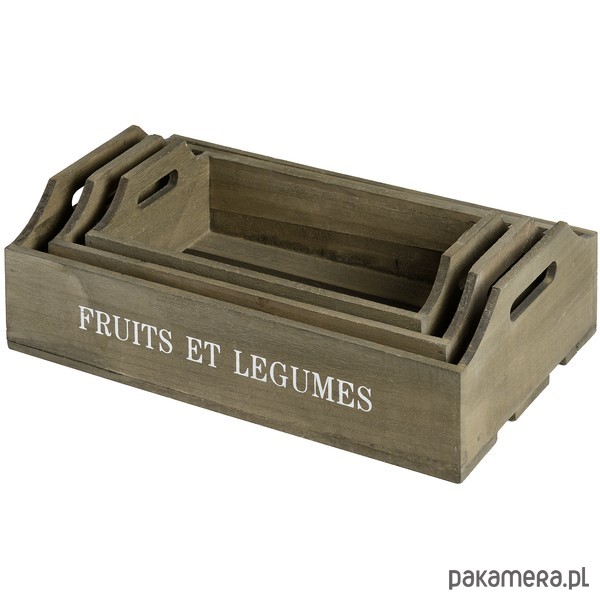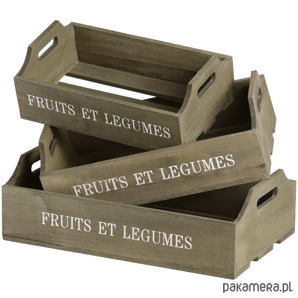 Ten uroczy zestaw 3 drewnianych skrzynek ozdobi każdą kuchnię, jadalnię czy taras ogrodowy. Pięknie łączą się z donicami pełnymi ziół. Wymiary skrzynek: L 40 cm x 24 cm x 9 cm M 35 cm x 21 cm x 8,5cm S 30 cm x 18 cm x 8 cm. Ostatnia sztuka, zapraszamy.