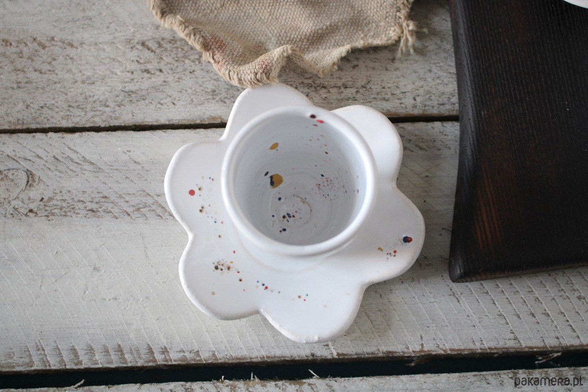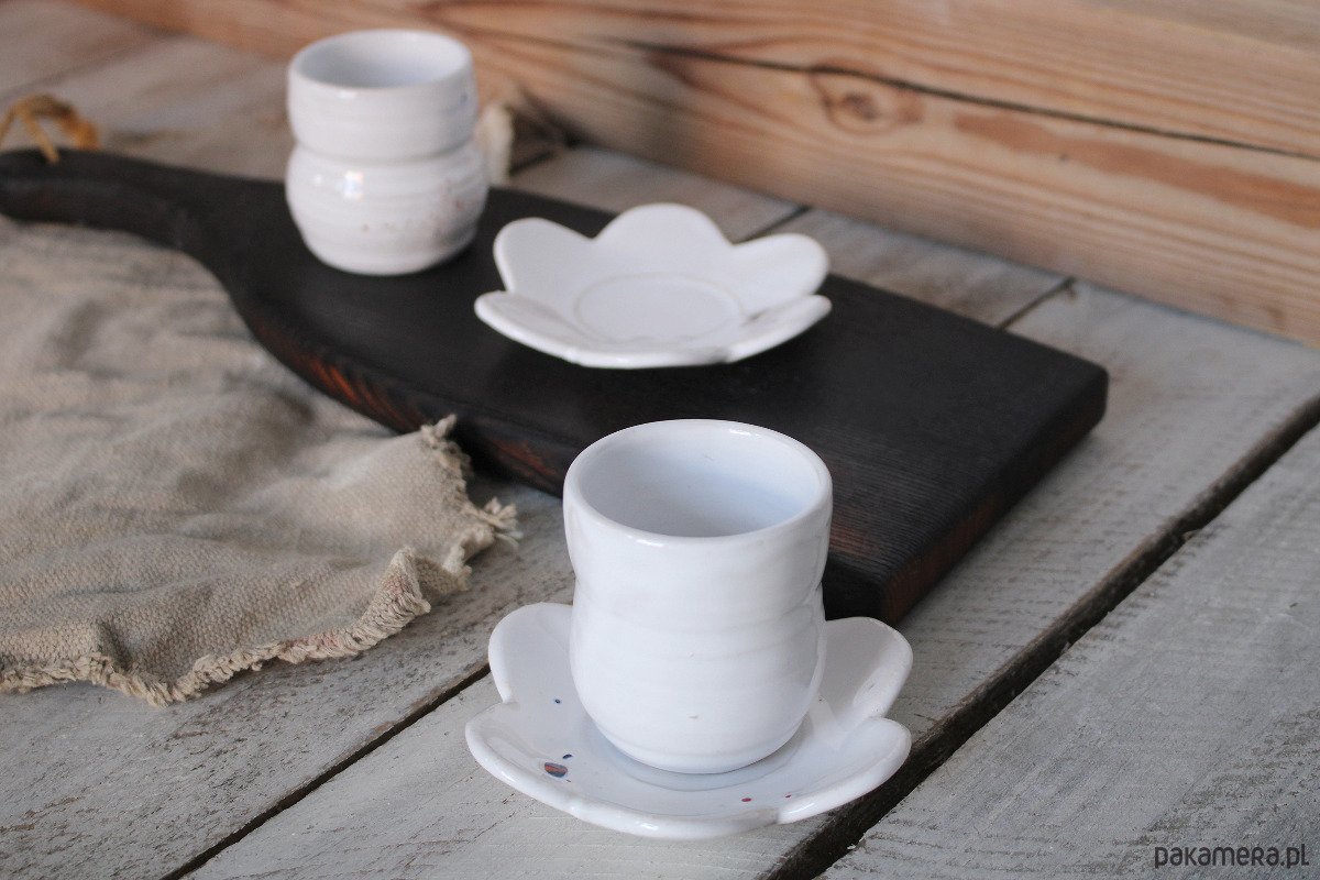 w skład kolekcji wchodzą filiżanki /małe/duże z podstawkiem w kształcie kwiatuszka/