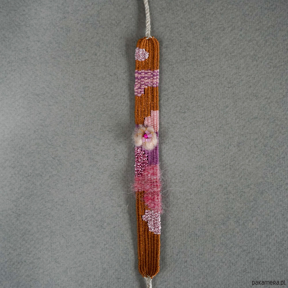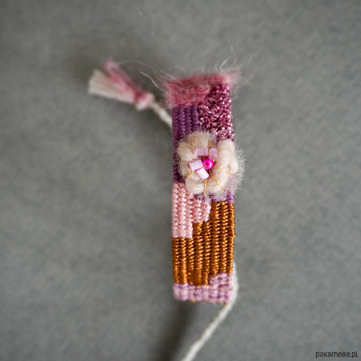 Bransoletka tkana w stylu rustykalnym z kwiatem