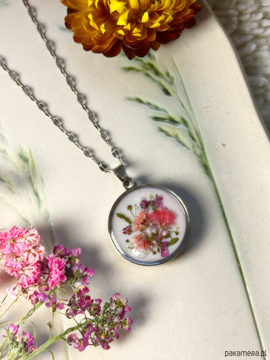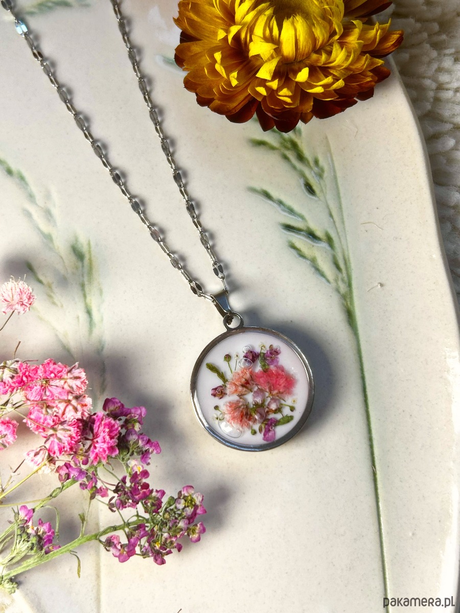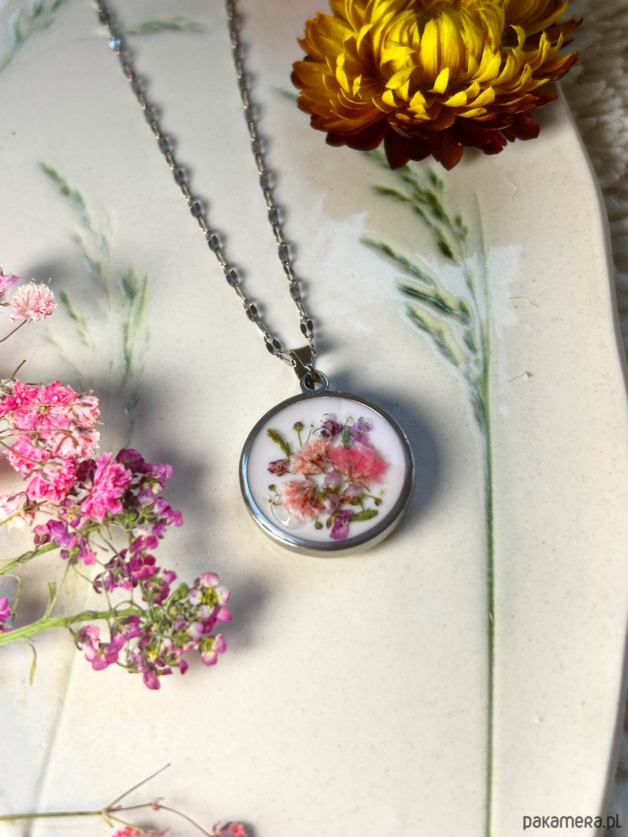 Przepiękny naszyjnik serce z bukietem kwiatów - idealny prezent