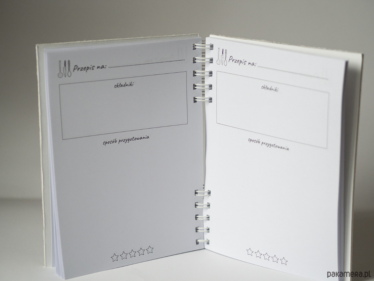 W środku znajdziesz ponad 80 autorskich kartek na przepisy , co daje ponad 160 stron na przepisy.