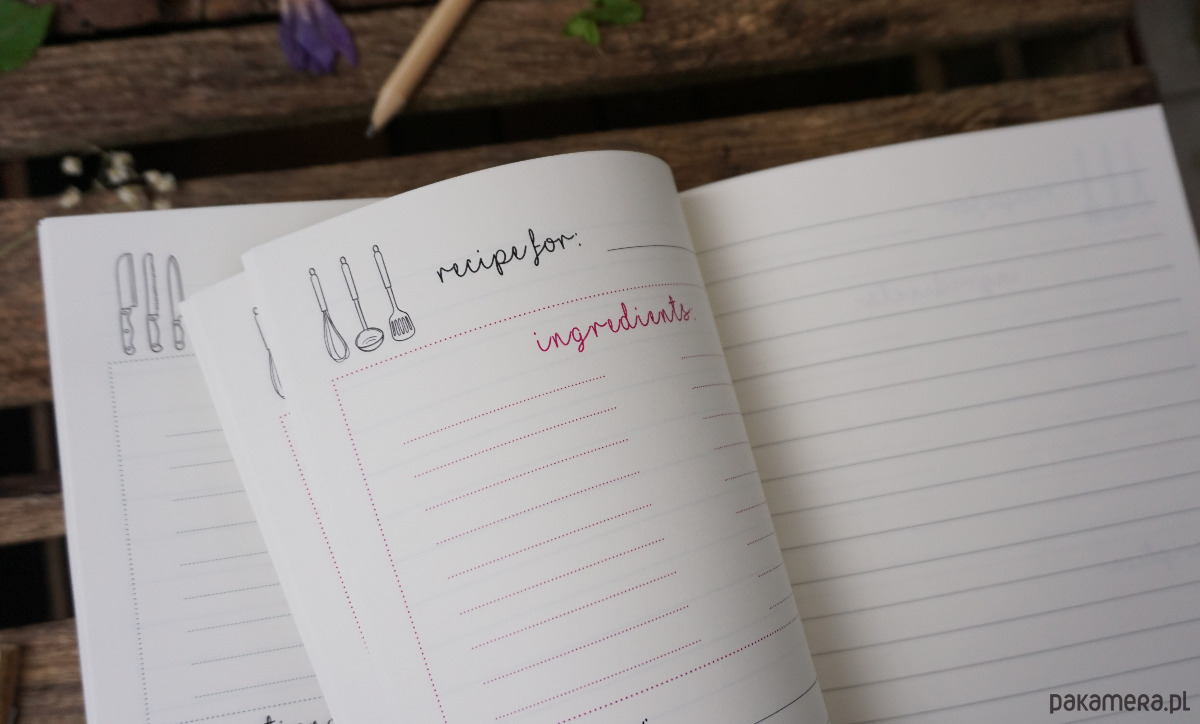 Kartki w środku zostały rozplanowane na wypisanie wszystkich składników oraz opisanie procesu przyrządzania potrawy.