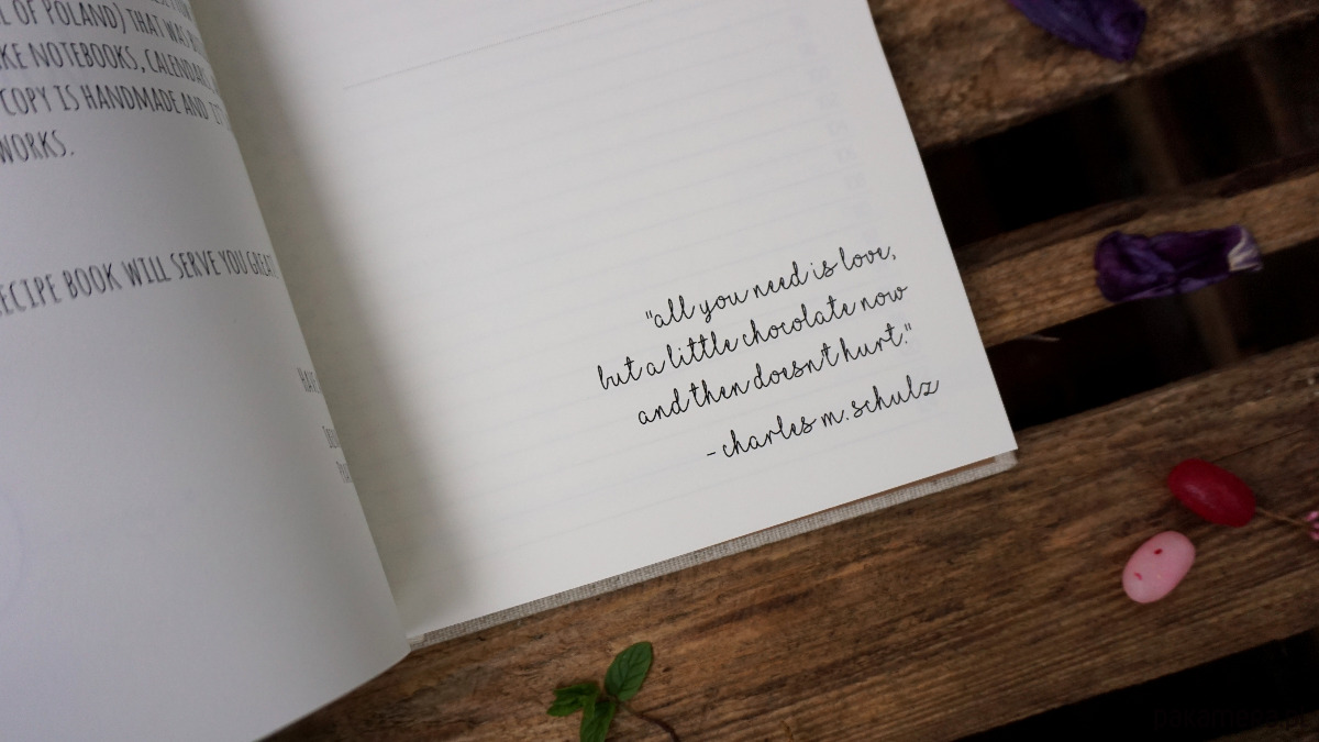 Notes ma w środku doskonały jakościowo, grubszy papier Olin (papier offsetowy typu premium, 100g), wygodnie pisze się po nim piórem.
