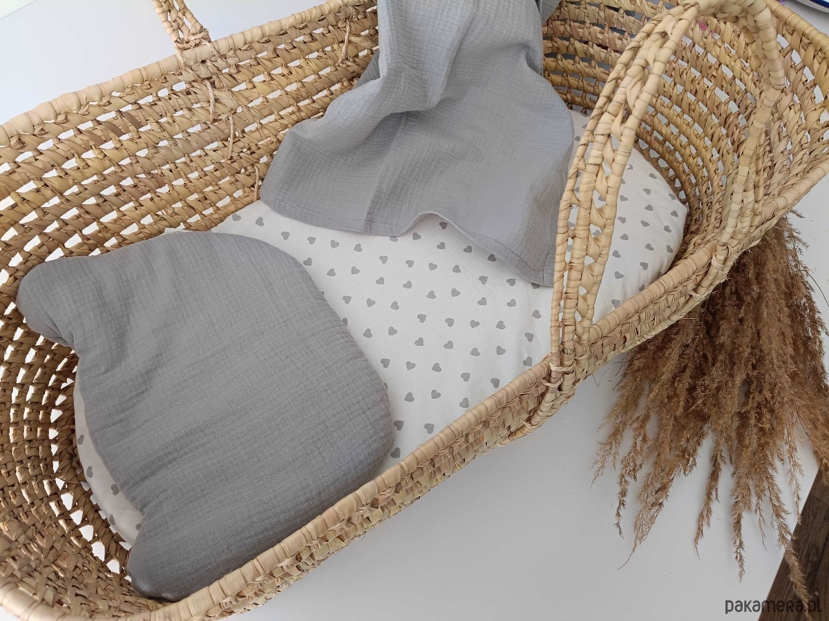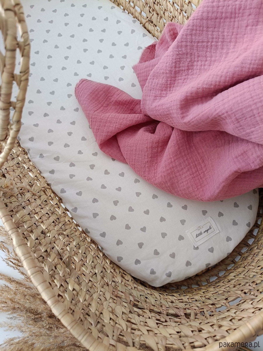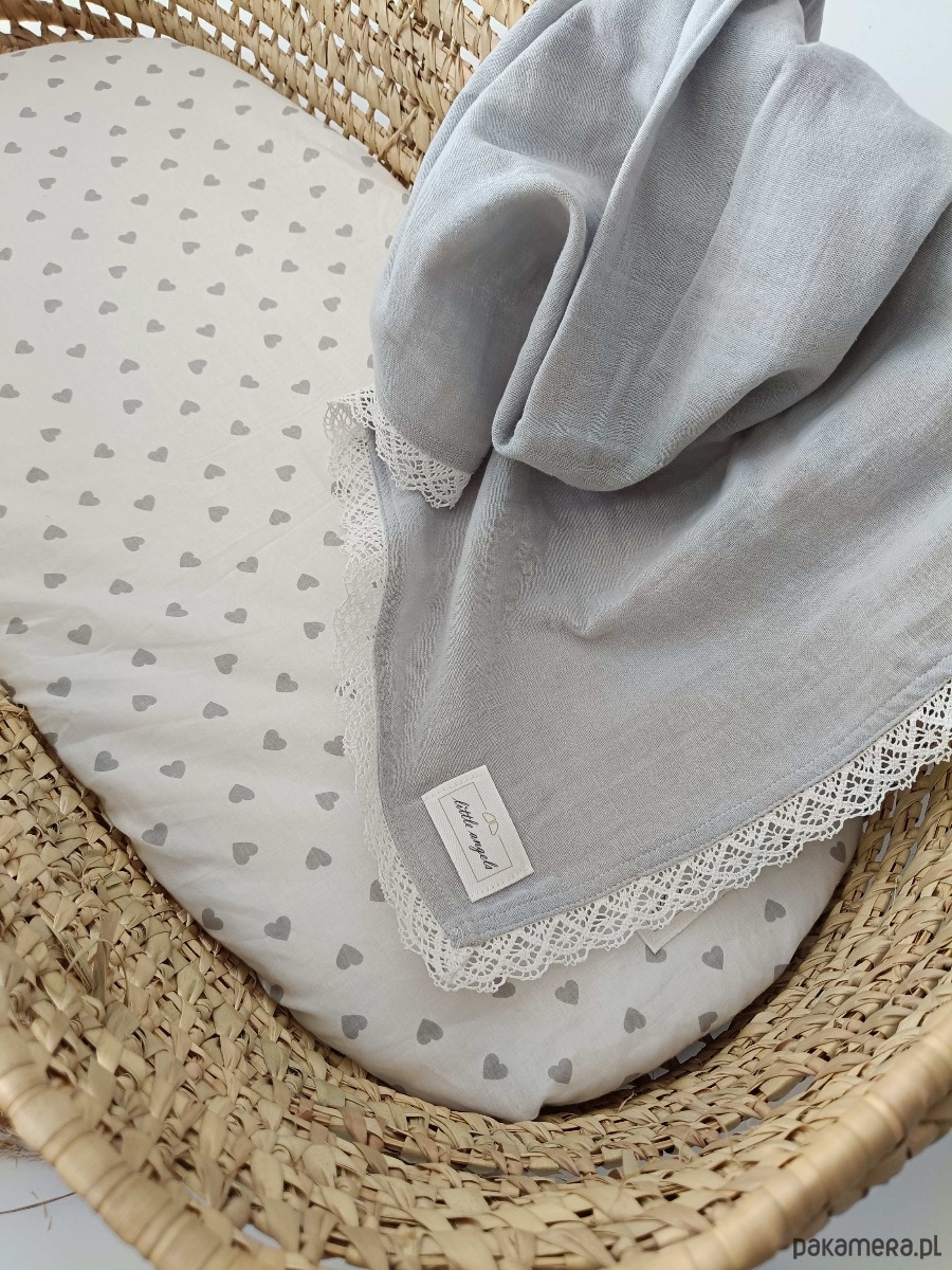 Prześcieradło do gondoli, kosza mojżeszowego - szare serduszka
