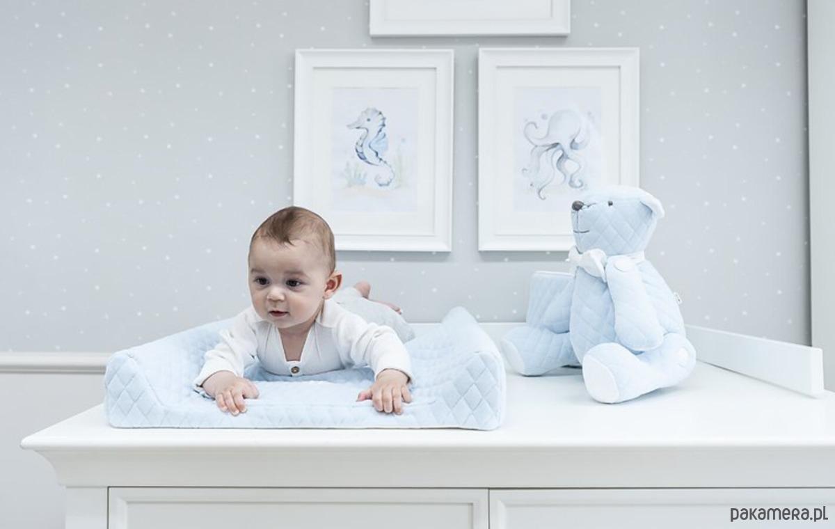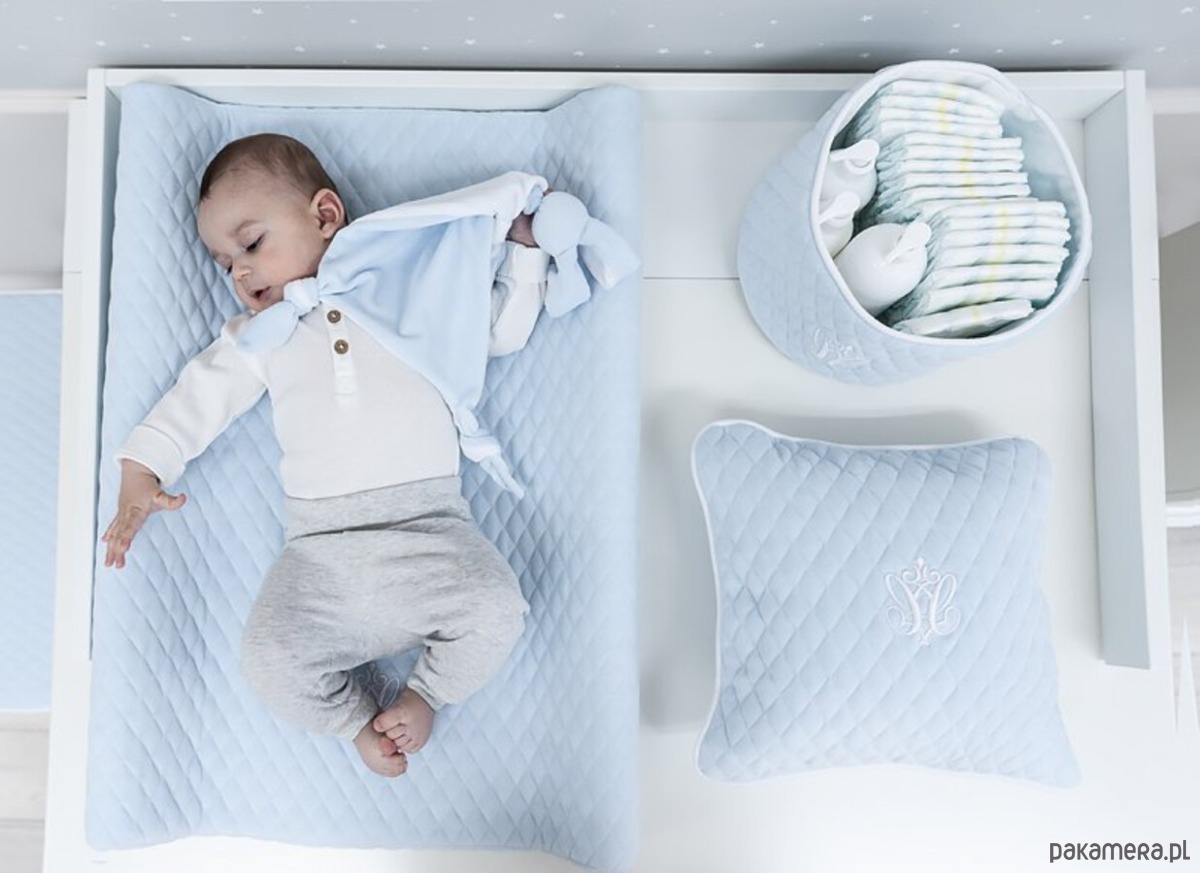 Przewijak błękitny pikowany z haftem to elegancki i funkcjonalny element wyposażenia pokoju dziecięcego. Miękki wkład, obszyty nieprzemakalną ceratką wolną od szkodliwych substancji, zapewnia bezpieczeństwo i wygodę maluszka podczas pielęgnacji. Pokrowiec wykonany z wysokiej jakości pikowanego weluru w odcieniu błękitnym został ozdobiony subtelnym haftem, co nadaje mu wyjątkowego uroku.
