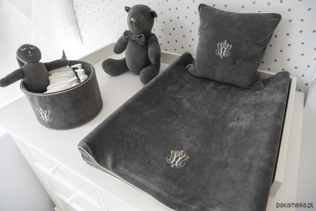 Przewijak antracytowy welurowy ze złotym emblematem stworzony z myślą o rodzicach, którzy cenią funkcjonalność w eleganckiej odsłonie. Obszyty luksusowym welurem w kolorze antracytowym prezentuje się niezwykle stylowo, a złoty firmowy emblemat dodaje mu wyjątkowego, ekskluzywnego charakteru. Wewnątrz znajduje się nieprzemakalny ceratowy wkład, który jest bezpieczny dla dziecka i łatwy do utrzymania w czystości. Dzięki specjalnie profilowanym bokom przewijak zapewnia komfort i bezpieczeństwo podczas codziennej pielęgnacji maluszka.