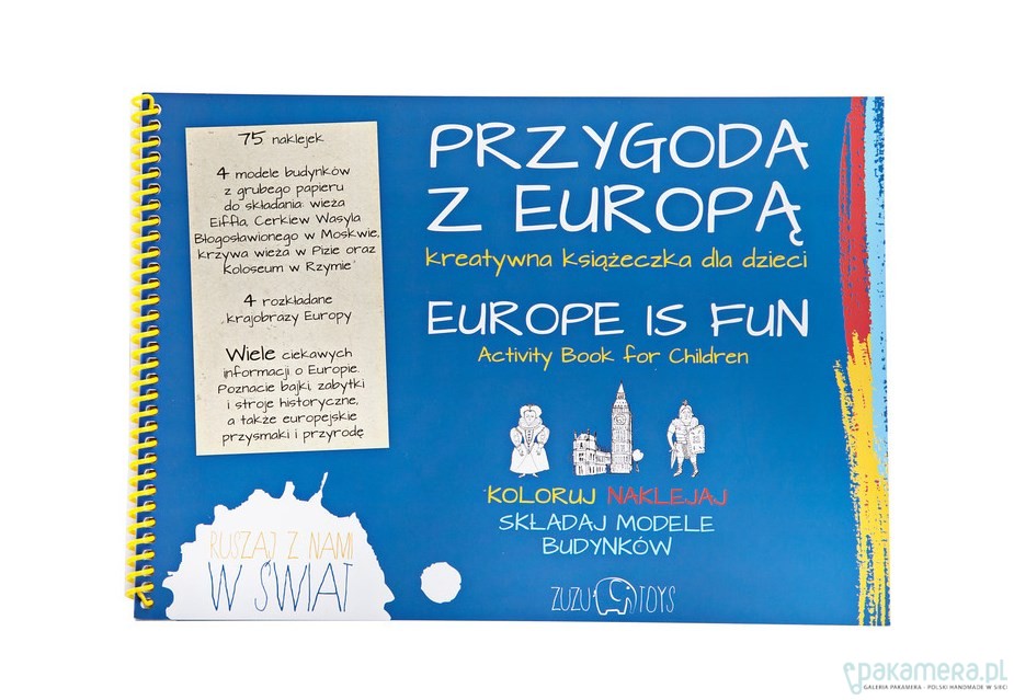 "Przygoda z Europą" to kreatywna książeczka, dzięki której dziecko bawiąc się przyswaja wiele ciekawych informacji o Starym Kontynencie. Pozna miejsca, zabytki i krajobrazy charakterystyczne dla Europy. Różnorodne polecenia sprawiają, że każda kolejna strona książeczki staje się wielką „Przygodą z Europą”.