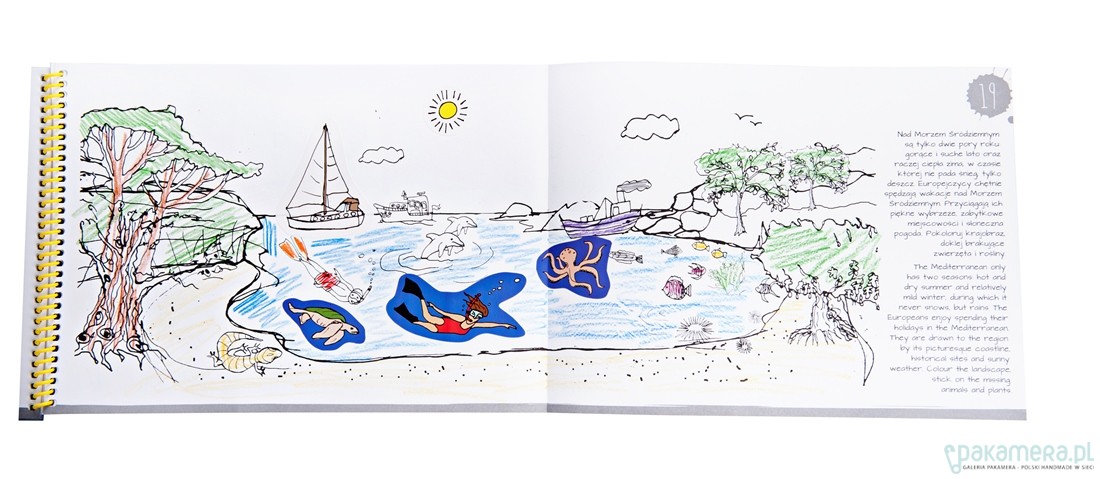 „Przygoda z Europą - kreatywna książeczka" rozwija zdolności manualne i doskonali precyzję ruchów, uczy liter i cyfr. Dzięki książce dzieci ćwiczą spostrzegawczość i analizę wzrokową a także doskonalą koncentrację. Wszystkie te umiejętności są potrzebne w nauce czytania i pisania. W kreatywnej książeczce „Przygoda z Europą” dzieci znajdą polecenia: