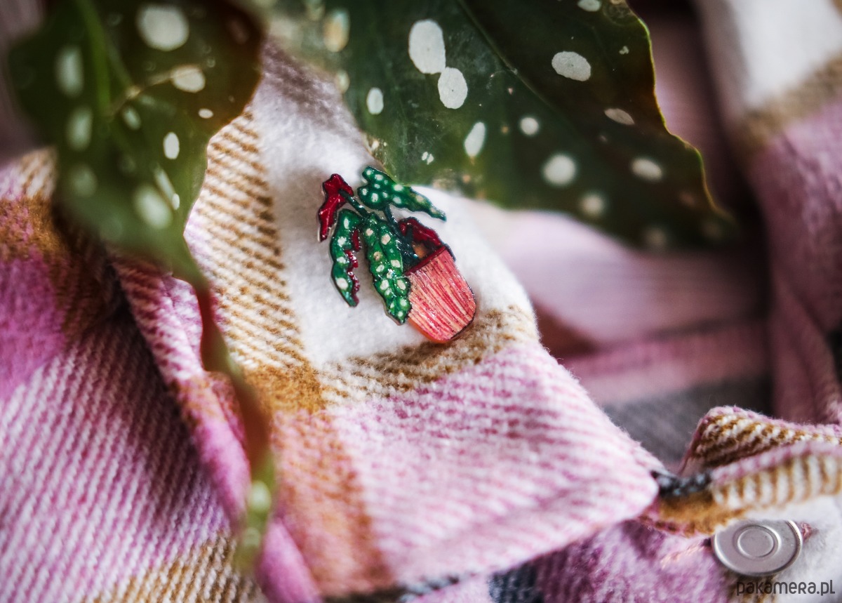 Mała, ale z charakterem — przypinka z begonią maculata, czyli królową roślin doniczkowych! 🌱✨